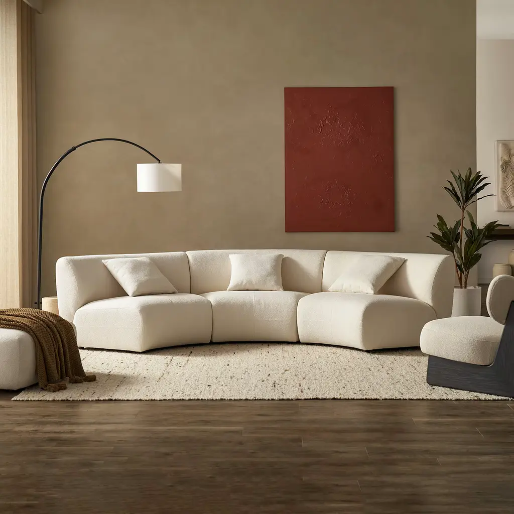 This artisan-crafted luxury piece, in Bouclé sonata cream with black feet, is a signature addition to your living room. The Cordova Sofa seamlessly blends comfort and aesthetics, making it a perfect addition to any living space.