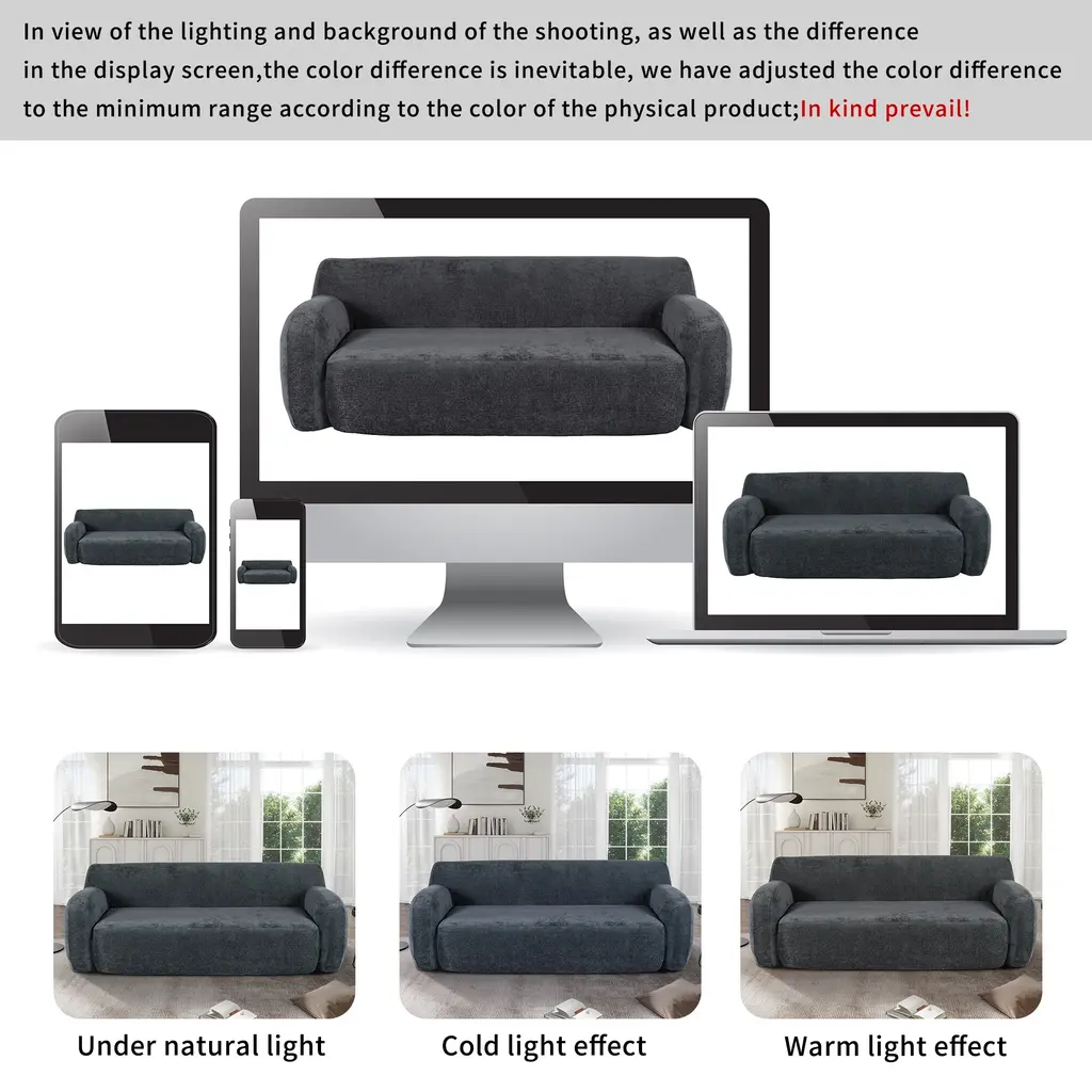 Curved Design Minimalist Compression Sofa, 3-Seater Casual Sofa - Gray