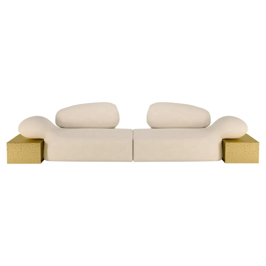 Introducing the Curved Fabric Sofa from Arflex Tokio. Experience generous proportions and a sophisticated, yet inviting design. The architectural geometry of this seat system creates a luxurious and comfortable seating experience. Elevate your space with Tokio's elegant and welcoming style.