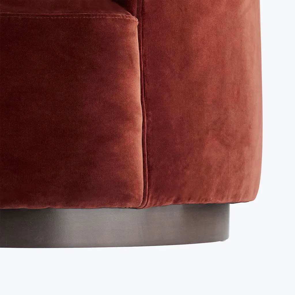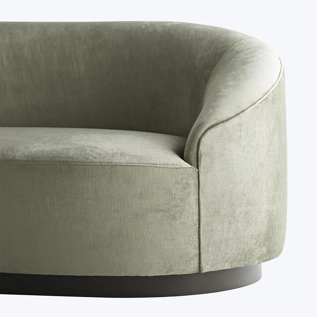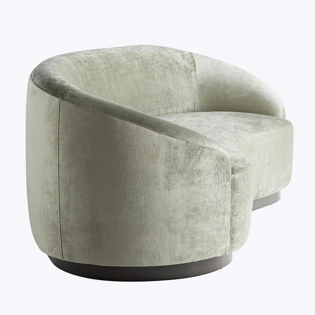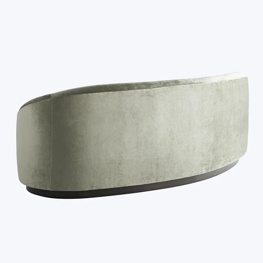 Sink into pleasant moments of relaxation with the Curved Sofa from abc carpet & home's Arteriors Collection. Boasting a simple curved design, this mid-century modern sofa creates a feeling of openness, bringing contemporary and romantic allure to any living space. The curved silhouette of this sofa effortlessly complements both modern and classic interiors. Its size makes it the perfect addition to cozy apartments or rooms with limited space. Its plush cushions and supportive backrest offer a cozy space for relaxation without overwhelming your space. Offered in a visually captivating paprika upholstery, this couch brings depth and character into your home. Whether entertaining guests in your living room or adding a cozy seating option to your office, the Arteriors Curved Sofa is sure to offer a cozy place to unwind in style. Pair this sofa with other pieces from the Arteriors Collection to create a cohesive ensemble in your living space. Alternatively, pair this sofa with various pieces from abc carpet & home's catalog to curate a unique interior that reflects your personal style preferences. Experience the perfect blend of style and comfort with our Arteriors Curved Sofa, and transform your living space into a cozy retreat that you'll love coming home to. With its simple curved design and captivating visual appeal, this sofa is sure to become a cherished part of your home.