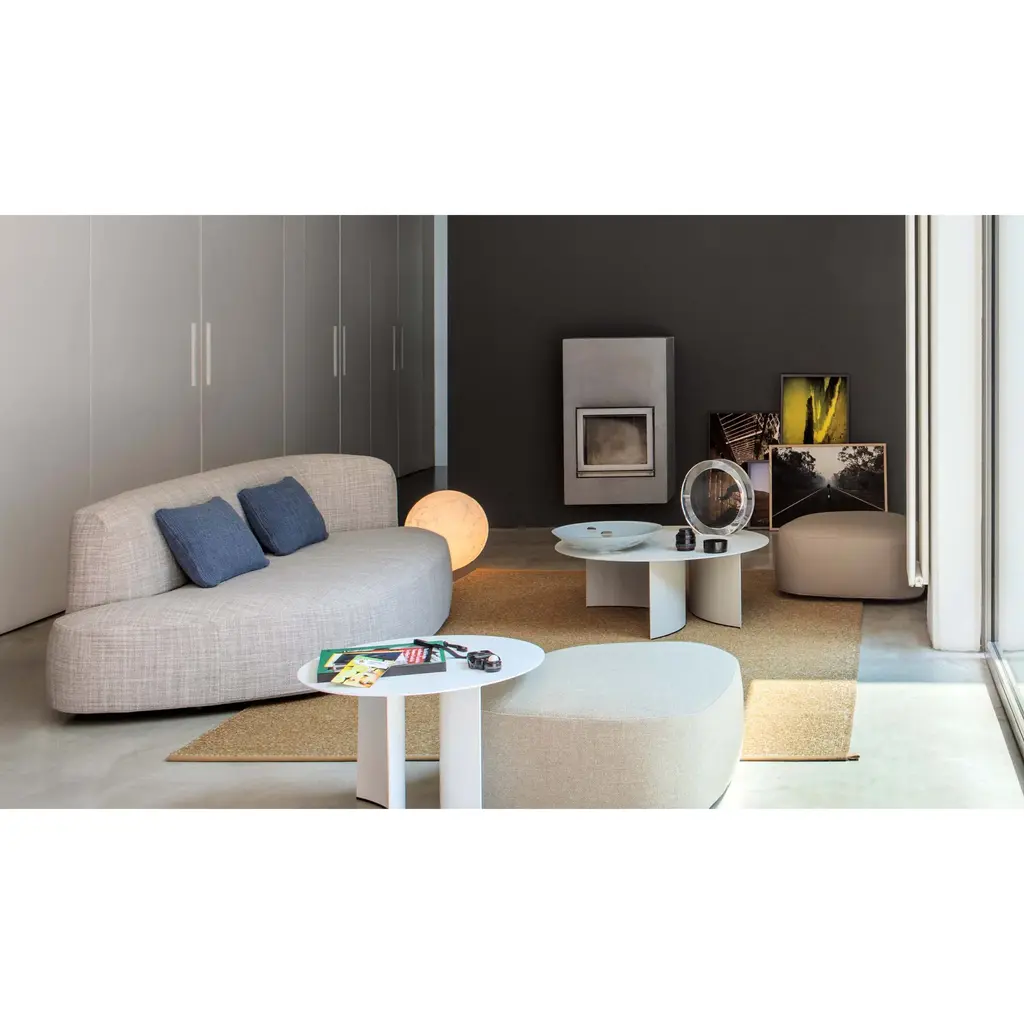 Indulge in luxury with Pierre Sofa 005. Its irregular shape and soft back provide unparalleled comfort. Upholstered in removable fabric or leather, it pairs perfectly with the collection's coffee tables and poufs for a unique and artistic living space, be it private or public.