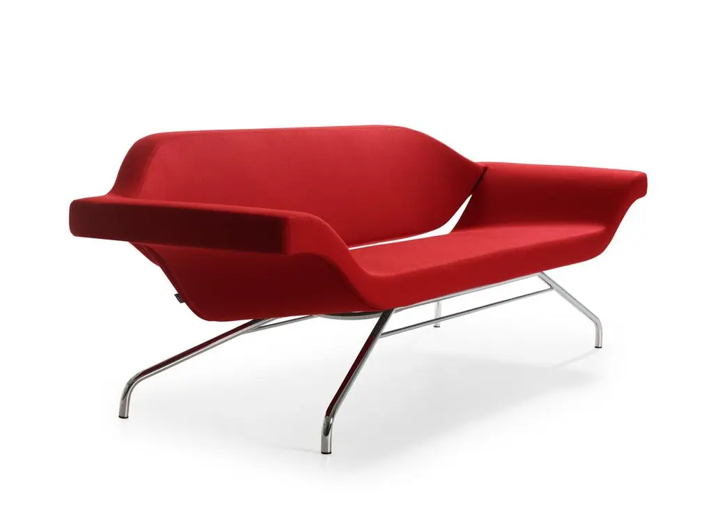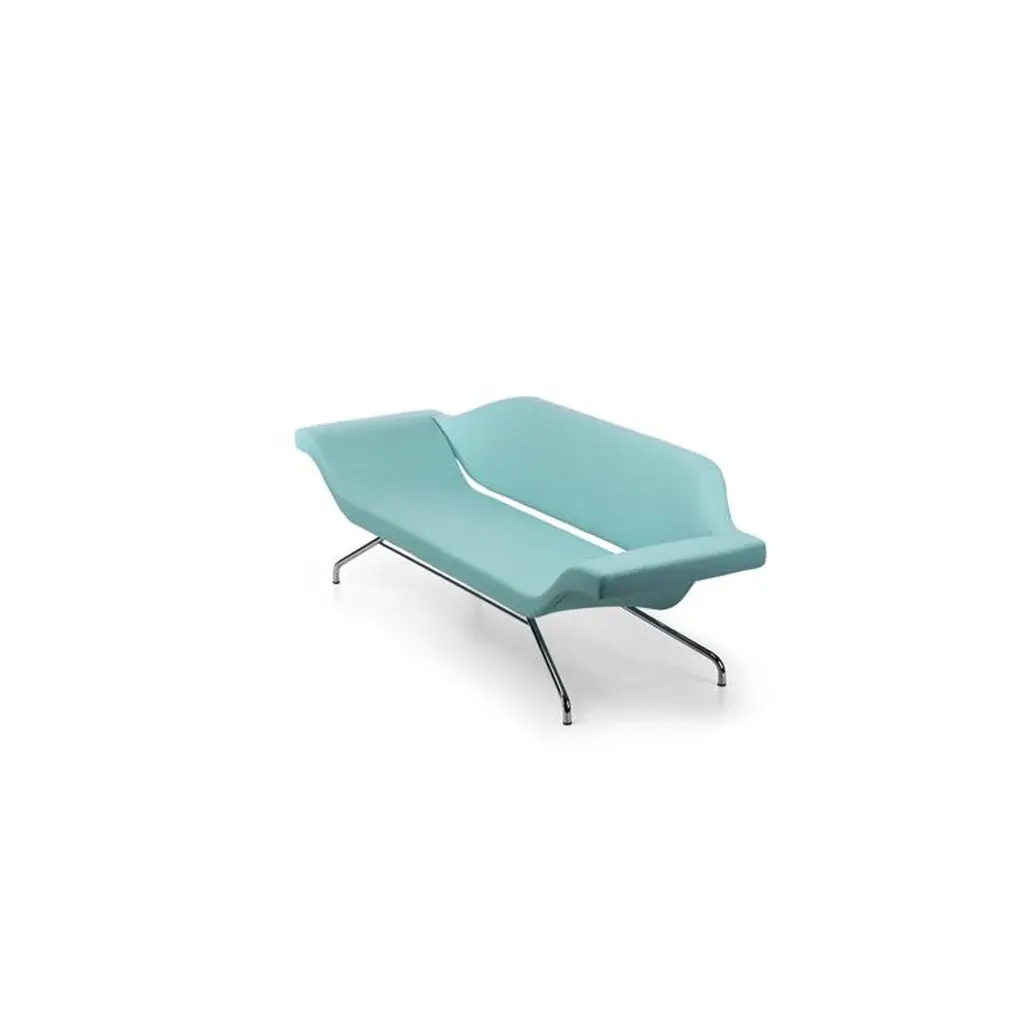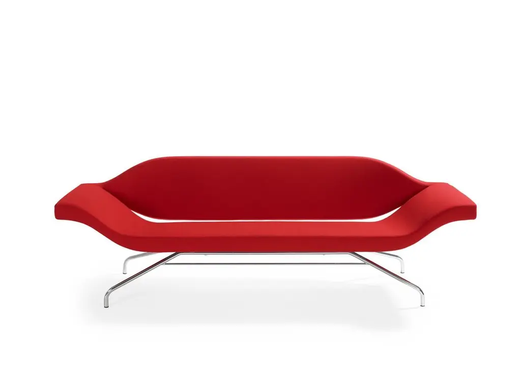 Rising from the arm, the seat and back fuse together into the other arm. Simple principles provide the best design for a comfortable sofa. A sparse supporting frame allows the seat and back to float like a wave. With its powerful interplay of lines, this sofa will continue to excite emotions.Grade AA fabricUpholstery: Textile or leather. Base: Chrome or powder coated.Please note that the item title reflects the primary image. Additional images may reflect the product in different colorways that are also offered on 1stdibs.
