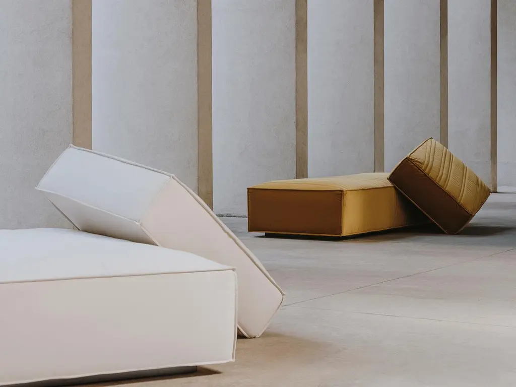 Stack is a cushion casually tossed on top of another cushion.Pouf with cushion — Structure black lacquered mdfDifferent models and sizes availablePouf with cushionSize: W2400XD1550XH800XSH420 W94" 1/2 xD61" xH31" 1/2 HS16" 1/2.