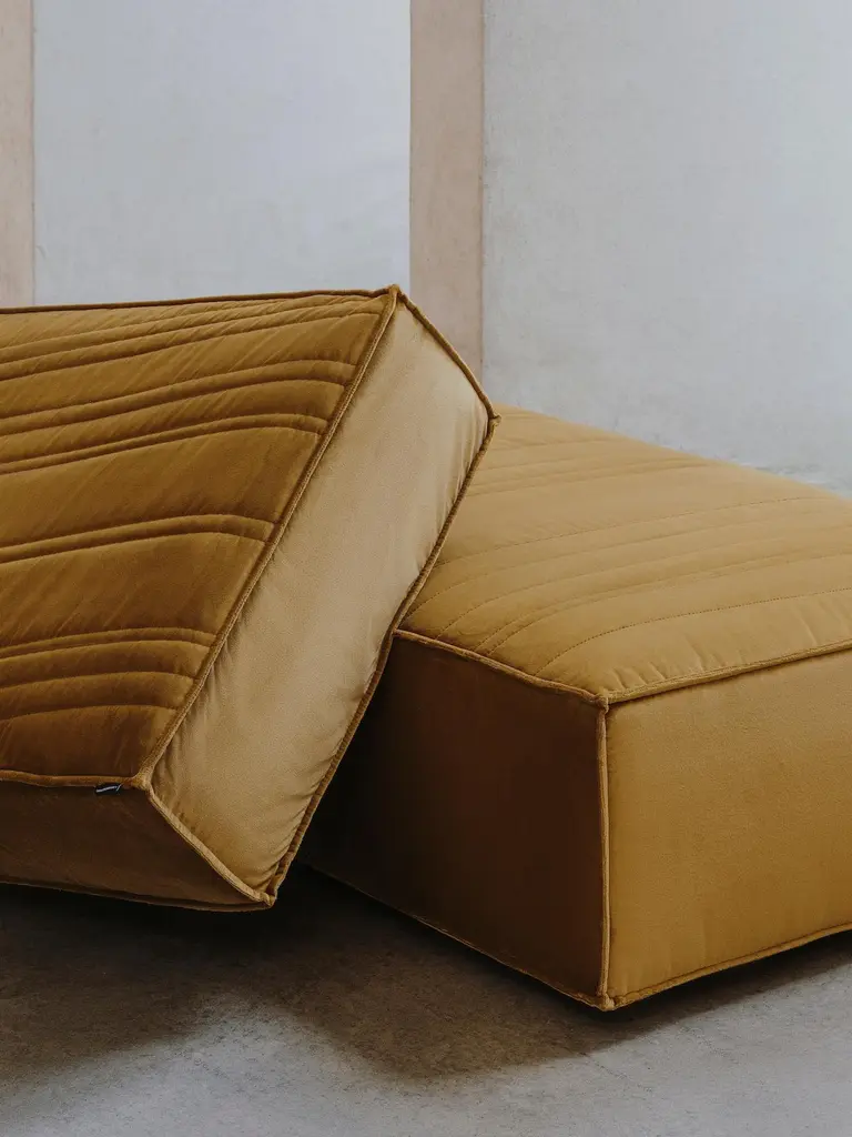Stack is a cushion casually tossed on top of another cushion.Pouf with cushion — Structure black lacquered mdfPouf with cushionSize: W1800XD2400XH740XSH420 W 70" 7/8 xD94" 1/2 xH29" 1/8 HS16" 1/2.