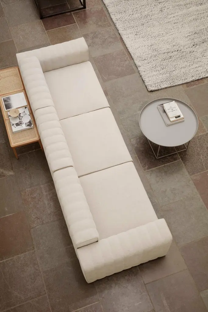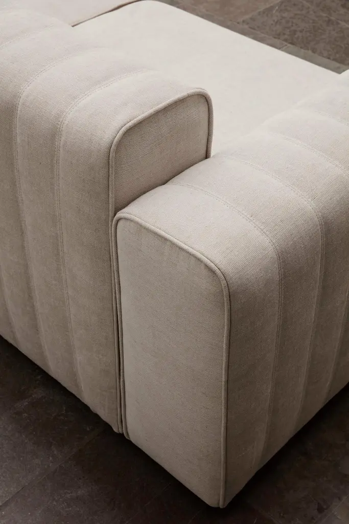 The Riff Series is available in a multitude of high-quality, ecoconscious materials, allowing you to create a truly one-of-a-kind piece that is both beautiful and sustainable.Available in a variety of fabrics and custom materialsDeep seating and generous proportionsFluted upholstery makes the sofa beautiful from all anglesEach module has piping around the edgesClick-Link system to connect modules7 different modules to create your customised sofaOptional cushions are availableMade in Italy