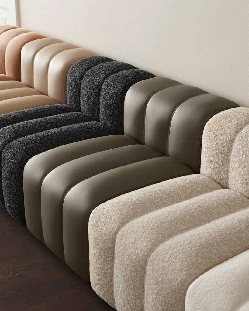 1x Medium1x Large 1x Corner2x ArmrestWidth: 230 cmDepth: 96 cmLength: 190 cmHeight: 70 cmSeat Height: 47 cmIntroducing Studio, the newest sofa landscape in the NORR11 collection - a tribute to the timeless era of the 70s and its expressive aesthetics. Featuring a versatile yet simple system of modules, appearing in limitless options to form numerous settings, shapes and styles, blending into all sort of environments. Whether a small living setting or a spacious public site.Studio is defined by its bold fluted upholstery characteristics inspired by late 70s sofa styles, refined in a contemporary way - giving the series a unique identity. Each module of Studio articulates soft and welcoming lines ideally suited for living, socialising and relaxing where one can feel totally at ease. The armrest cushion is loose and can be moved and repositioned across the series, balancing the fluted upholstery.Product facts:360-degree finish, each module can be a stand-aloneModules can be reversed to create a two-sided sofaClick-Link system connects modulesMovable armrest cushionSoft foam mix for ultimate comfortOn request available in a classic non-fluted upholsteryAvailable in a wide variety of high-quality eco-fabrics or Sørensen LeatherMade in Italy.