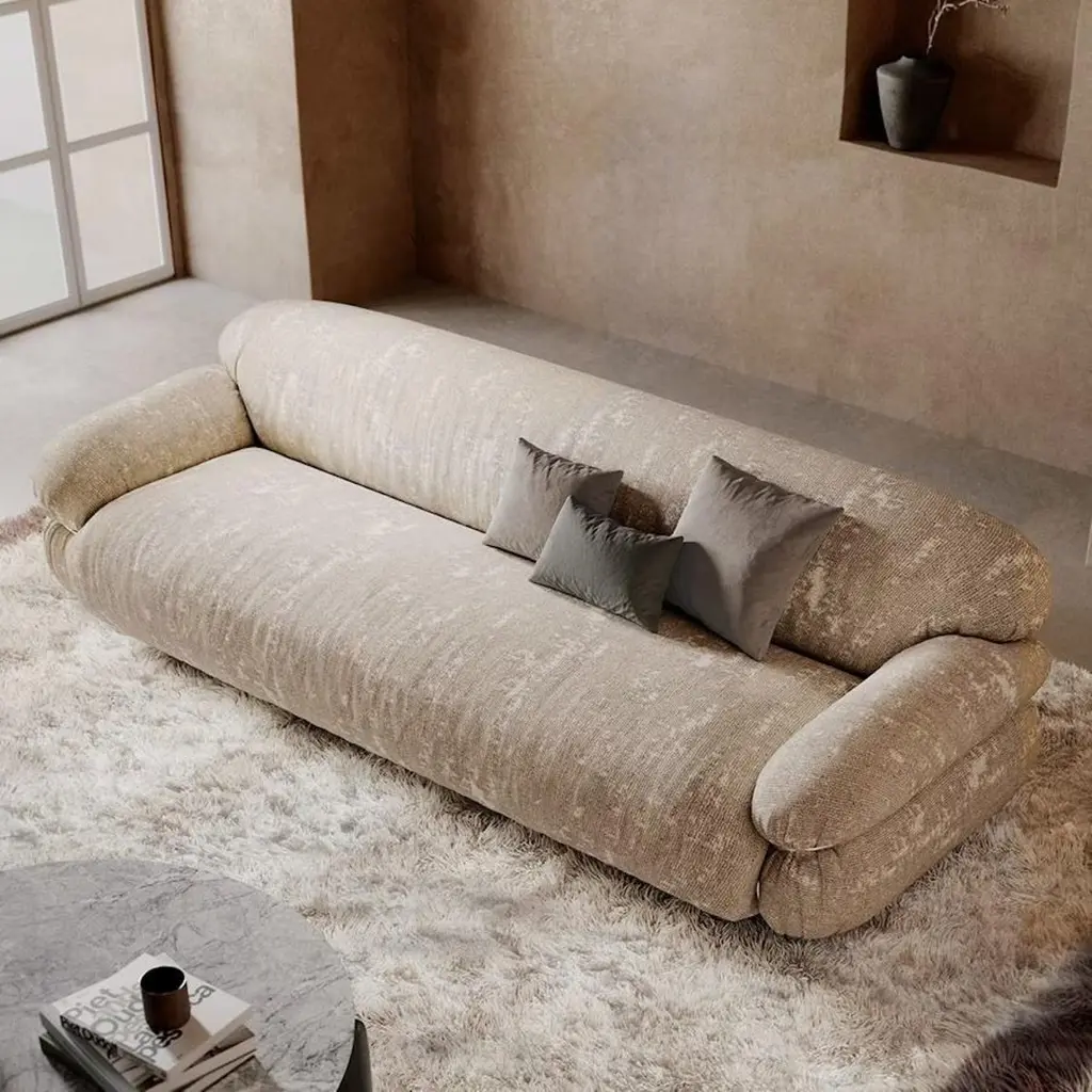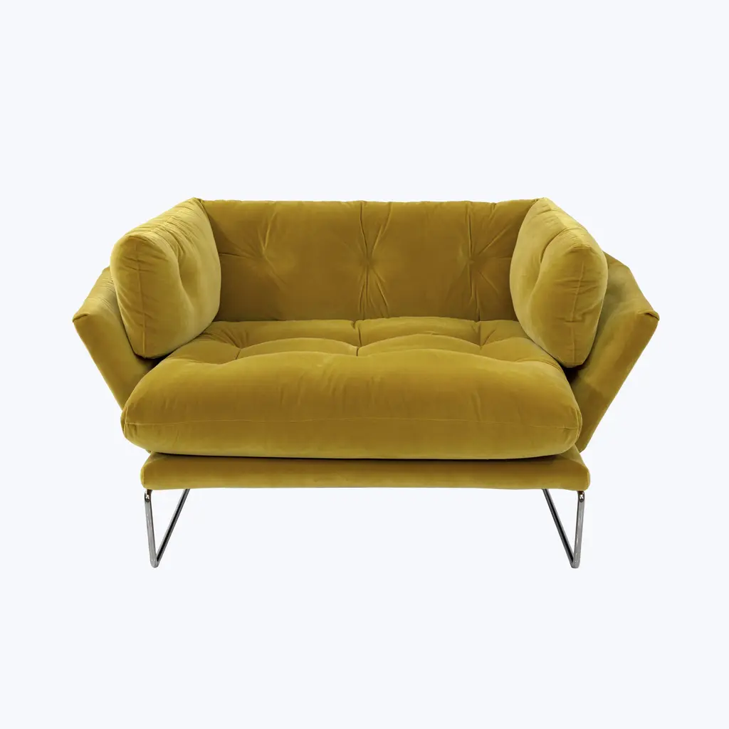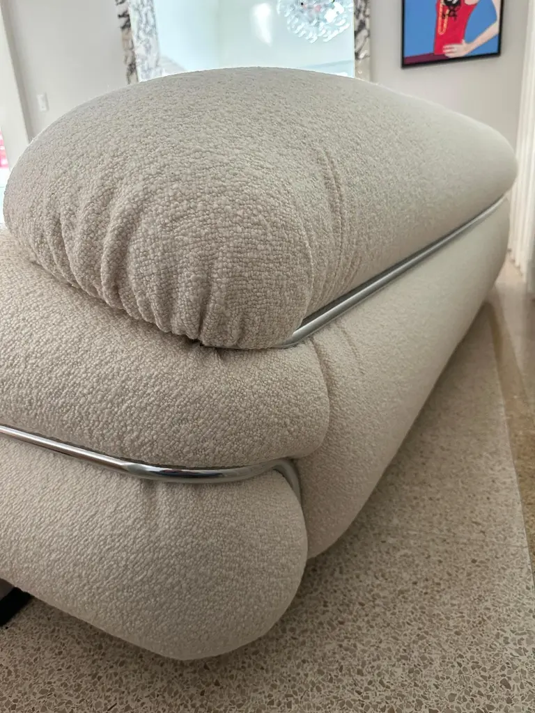 Base: painted or chromed metal.Feet: walnut or gray stained ash.Upholstery: not removable.Sesann is reborn in new dimensions to offer greater comfort and sensuality with a deep and welcoming seat that further enhances the important volumes of this historic sofa. Grand Sesann thus becomes synonymous with peace and absolute rest, without losing the distinctive features of Gianfranco Frattini’s iconic project and the re-edition already presented by Tacchini in 2015 – such as the tubular metal architecture that envelops the soft shapes and colour combinations and high-impact materials that can be created between the structure, padding, and wooden feet.