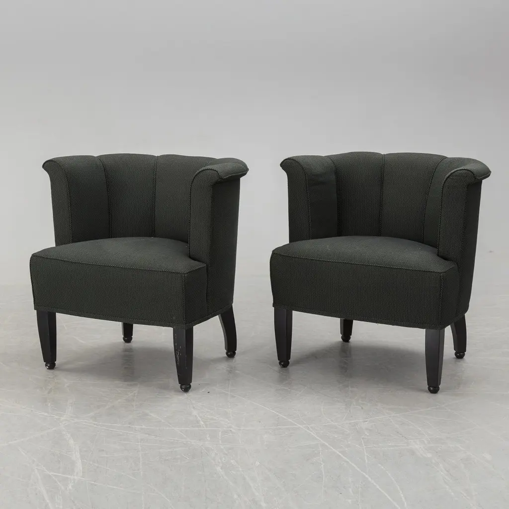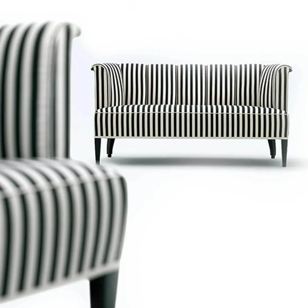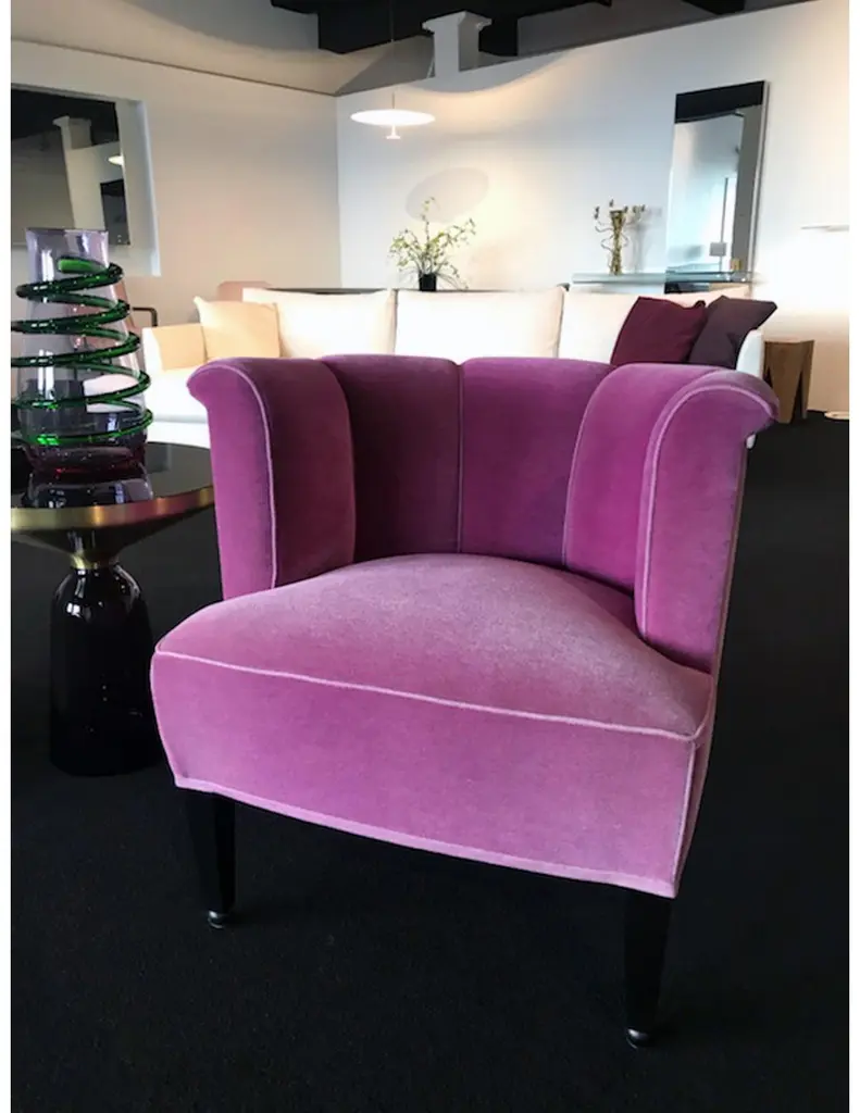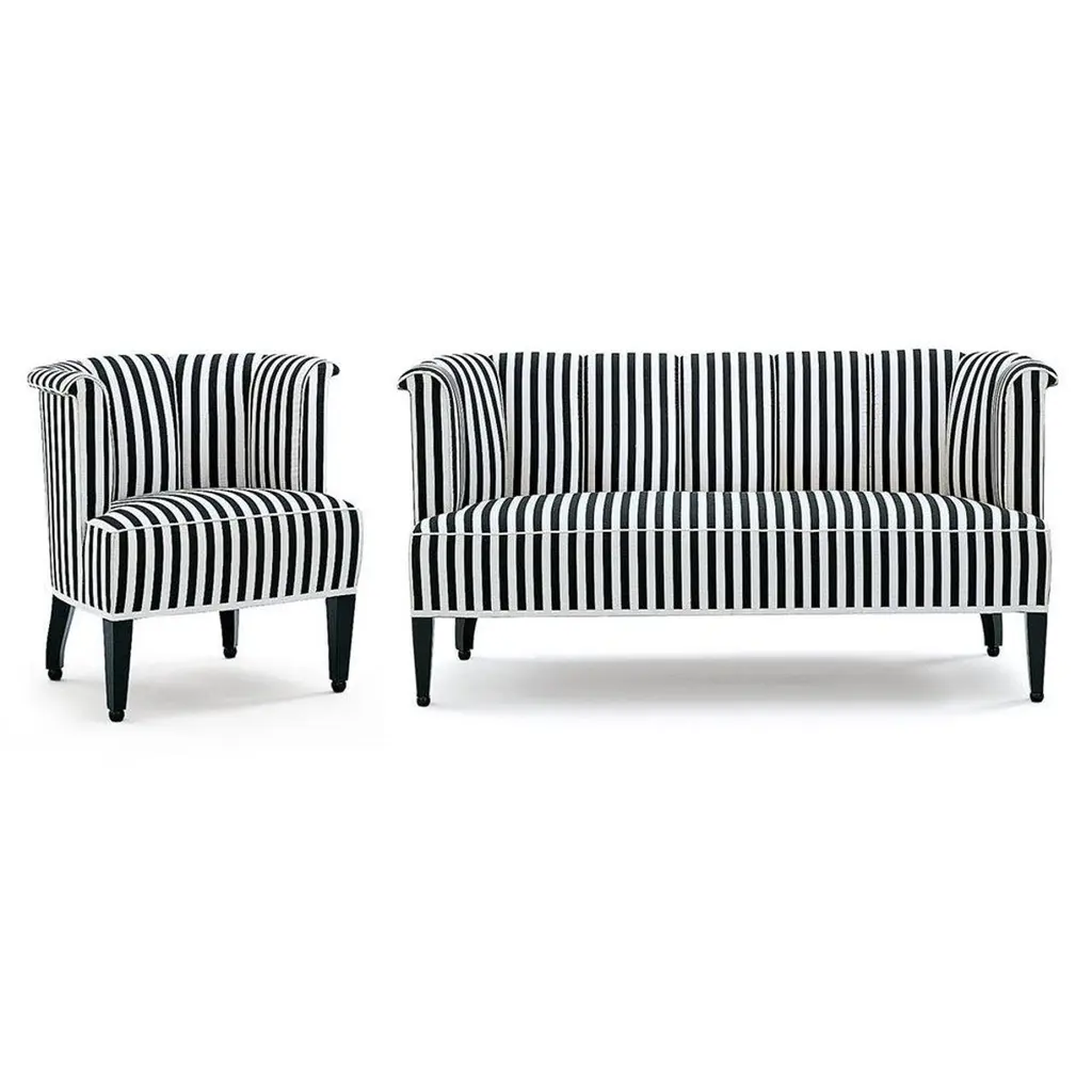 Design: Josef HoffmannThis upholstered suite was designed in 1912 for Dr. Hugo Koller’s music room as part of the furnishings at his Vienna apartment in Alleegasse (now Argentinierstrasse).Available in different upholstery materials: Fabrics and leathers.Frame: Wooden constructionLegs: Beech black stained, round wooden leg-caps. Standard: Beech black stainedSurcharge: Special staining or RAL lacquered for legsSeat: Ridged webbing, coil springs, jute overlay, polyurethane foams sandwich layered, Dacron overlay.Arm and backrest: elastic webbing, polyurethane foams sandwich layered, Dacron overlayCover: Fixed covers with piping.