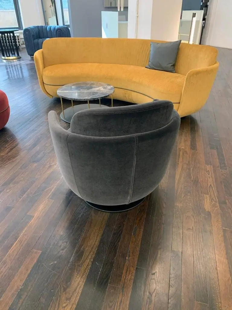 Many different upholstery materials available. Soft, round, inviting, protective. Many attributes can be ascribed to the chairs, armchairs, sofas and tables in the Miles series. They add refinement to homes, hotel lounge areas, meeting corners in offices and reception areas in stores to prove the ultimate in aesthetics, comfort and finish. Long gone are the days when formal sofa arrangements dominated living spaces. Today the sofa has become a highly private piece of furniture, almost exclusively reserved for its owners as a place to relax, recharge their batteries and enjoy each other’s company. An inherently stabile armrest envelops the backrest, creating a visual – and literal – support and security. All of which is new and different, and highly alluring. Miles ahead, in a manner of speaking.