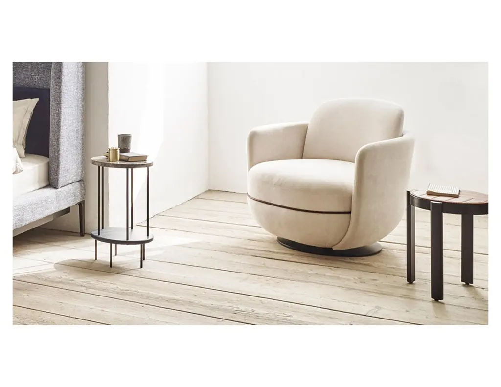 Many different upholstery materials available.Soft, round, inviting, protective. Many attributes can be ascribed to the chairs, armchairs, sofas and tables in the Miles series. They add refinement to homes, hotel lounge areas, meeting corners in offices and reception areas in stores to prove the ultimate in aesthetics, comfort and finish. Long gone are the days when formal sofa arrangements dominated living spaces. Today the sofa has become a highly private piece of furniture, almost exclusively reserved for its owners as a place to relax, recharge their batteries and enjoy each other’s company. An inherently stabile armrest envelops the backrest, creating a visual, and literal, support and security. All of which is new and different, and highly alluring. Miles ahead, in a manner of speaking.
