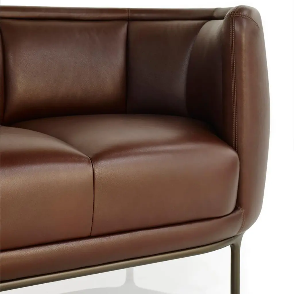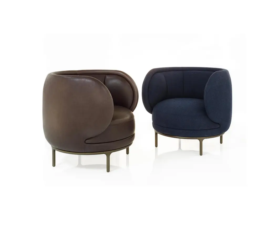 Rotation, turning, return – these are the meanings of the Spanish word Vuelta. The backrest rotates playfully around the corner, becomes the armrest, continues on to the sitter - or recliner–in order to enclose them, as in an embrace. The special shape is divided by expertly crafted seam patterns, as a reminiscence of Josef Hoffmann.