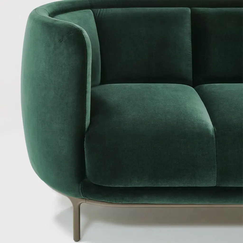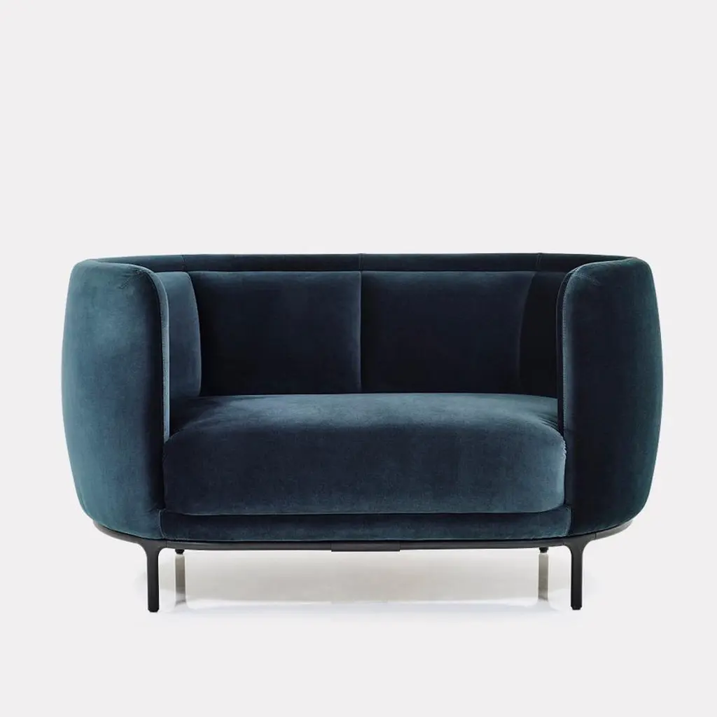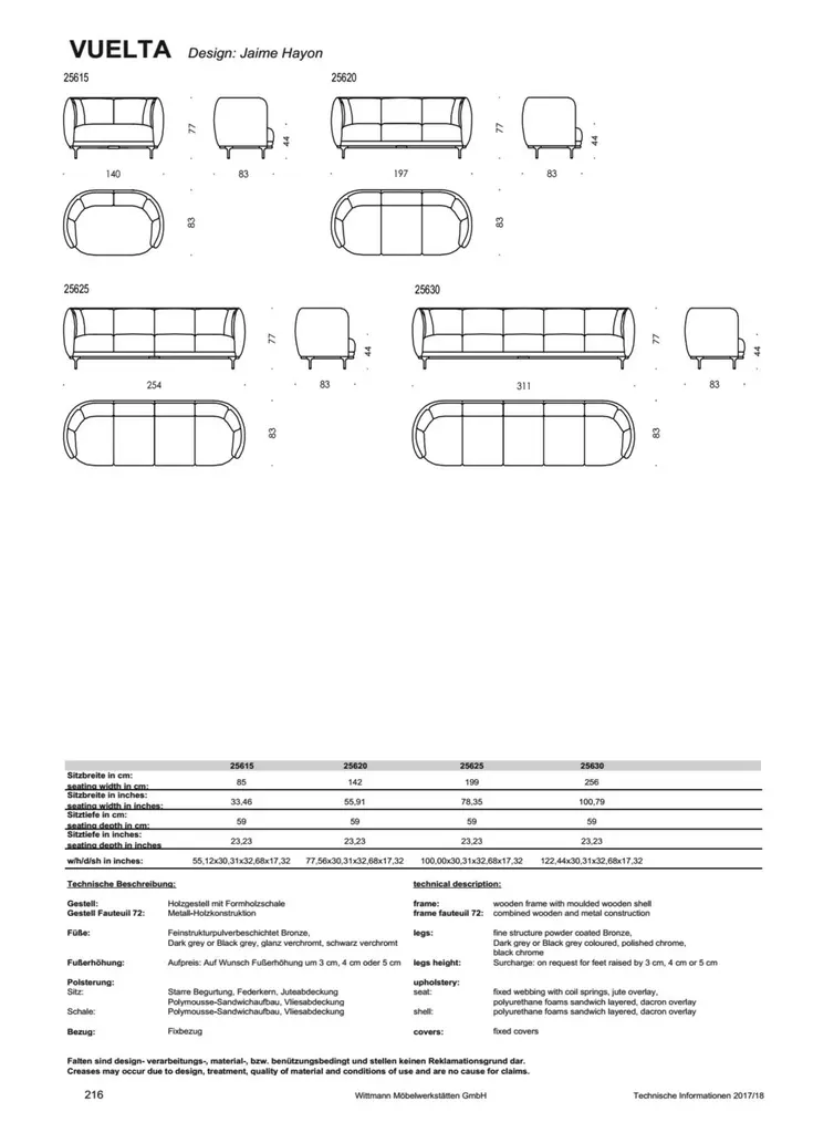 Rotation, turning, return, these are the meanings of the Spanish word Vuelta. The backrest rotates playfully around the corner, becomes the armrest, continues on to the sitter, or recliner–in order to enclose them, as in an embrace. The special shape is divided by expertly crafted seam patterns, as a reminiscence of Josef Hoffmann.