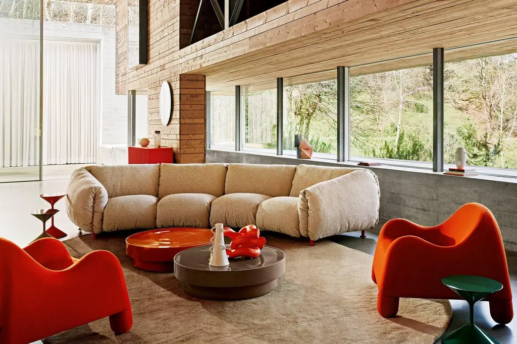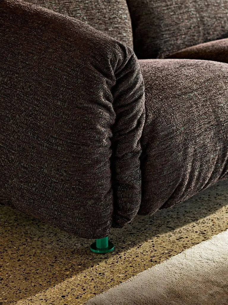 Price listed for starting fabricMonobloc, modular sofas and pouf. Carrying frame in talc, hemp, orange, amaranth, grass green, espresso or black painted steel, complete of stiff polyester straps in the shade anthracite for the support of the cushions. Seat, back and armrest cushions in polyurethane/ regenerated and regenerable polyester balls. Paddings assembly without glues. Removable fabric cover.Using exclusively recycled and recyclable materials, Za:Za Max is more than just a sofa: it is a manifesto of ecological responsibility. Thanks to its dimensions and a deeper seat to guarantee maximum comfort, this sofa features modular elements - two separate end pieces and a pouf - allowing different configurations, as well as stimulating creativity in interior design.