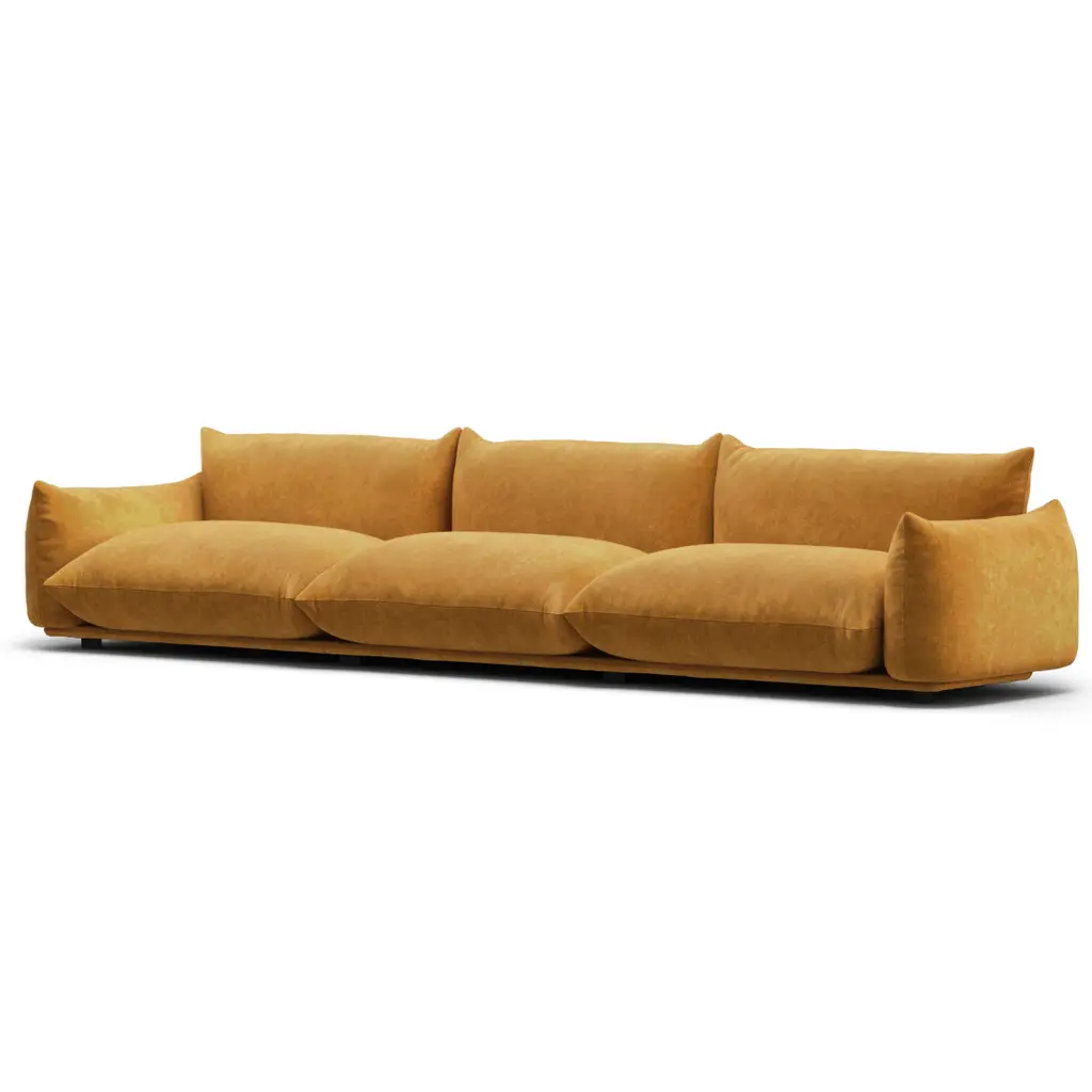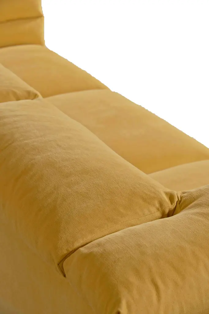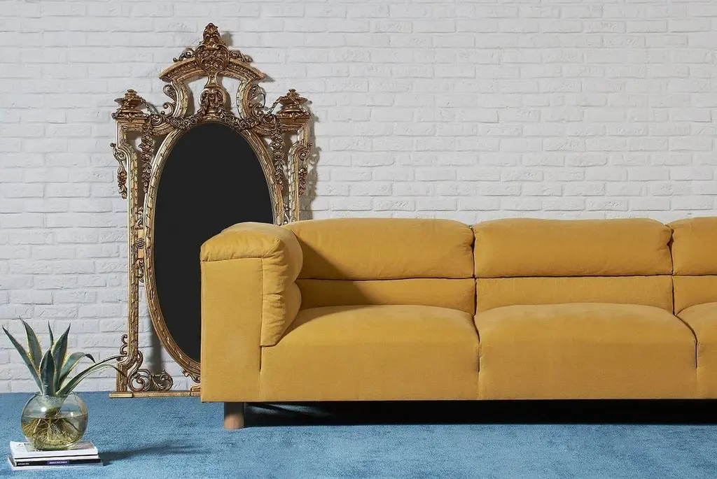 Murmurio, renowned for its innovative designs, has teamed up with Bow and Arrow Upholstery to unveil an exclusive furniture collection that seamlessly blends vintage aesthetics with traditional Portuguese craftsmanship.The Cypress sofa is a striking 300cm wide piece that effortlessly blends bohemian style with modern comfort. Upholstered in a vibrant yellow mustard fabric, this sofa instantly adds a pop of color and personality to any living space. The cylindrical natural ash feet, finished with a protective varnish, provide a touch of organic elegance and elevate the overall design.What truly sets the Cypress apart is its exceptional comfort. The seat and back cushions are generously filled with feather-wrapped fillings, providing a cloud-like softness that envelops you. This luxurious seating experience is further enhanced by the sofa's relaxed design, which prioritizes comfort without sacrificing style.The Cypress sofa's bohemian aesthetic is reflected in its lines and casual silhouette. The unique design of the seat and back cushions creates a visually interesting pattern, adding a touch of eclectic charm to your living space.