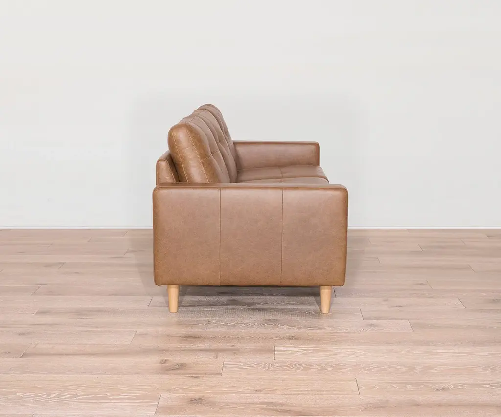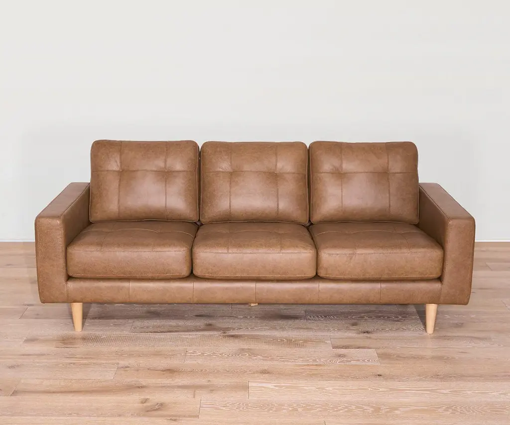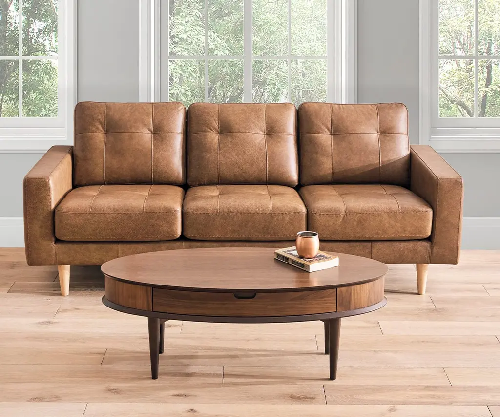 With lounge-worthy comfort and a refined design, the Damian Leather Sofa is a sure thing in any settingfrom contemporary to classic and beyond. Design Essentials pieces are timeless, trend-proof and perfect for first-time buyers still building their look. Crafted to complement a variety of settings and offered at an exceptional value, they evolve effortlessly with your style. Natural characteristics in the leather may change over time, making each piece one-of-a-kind.