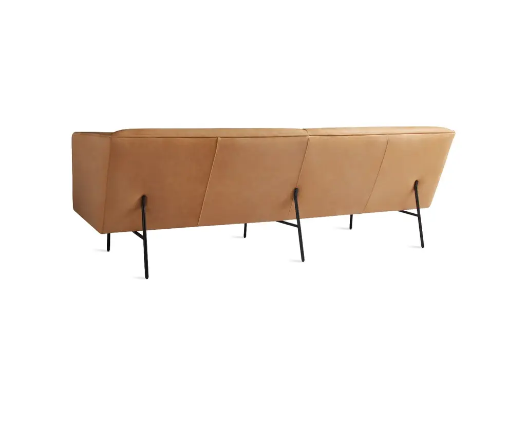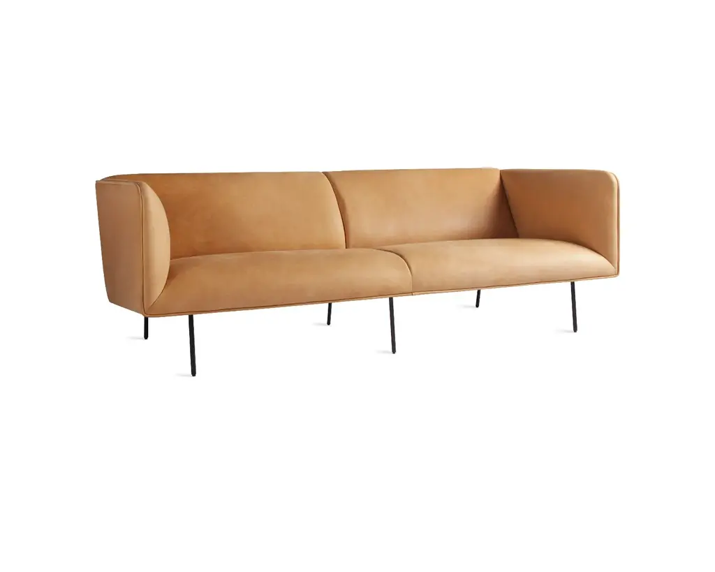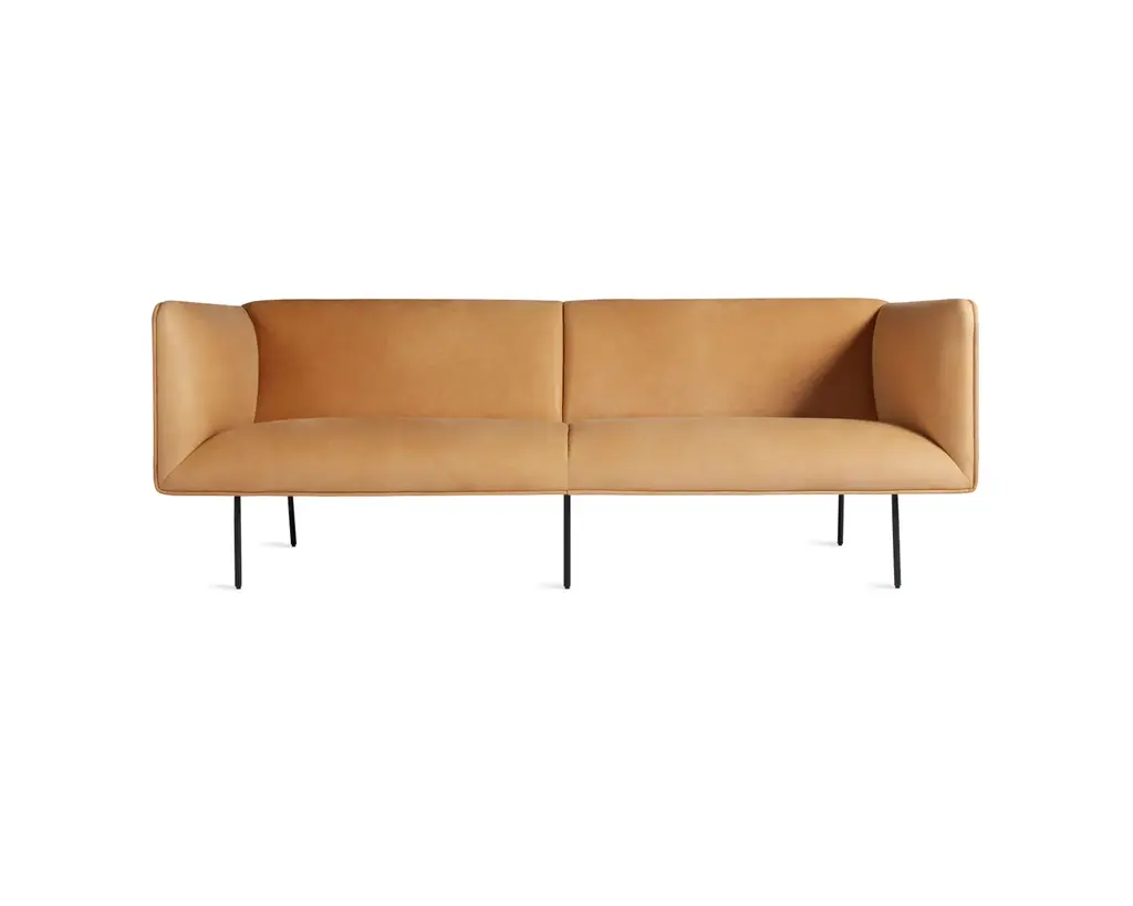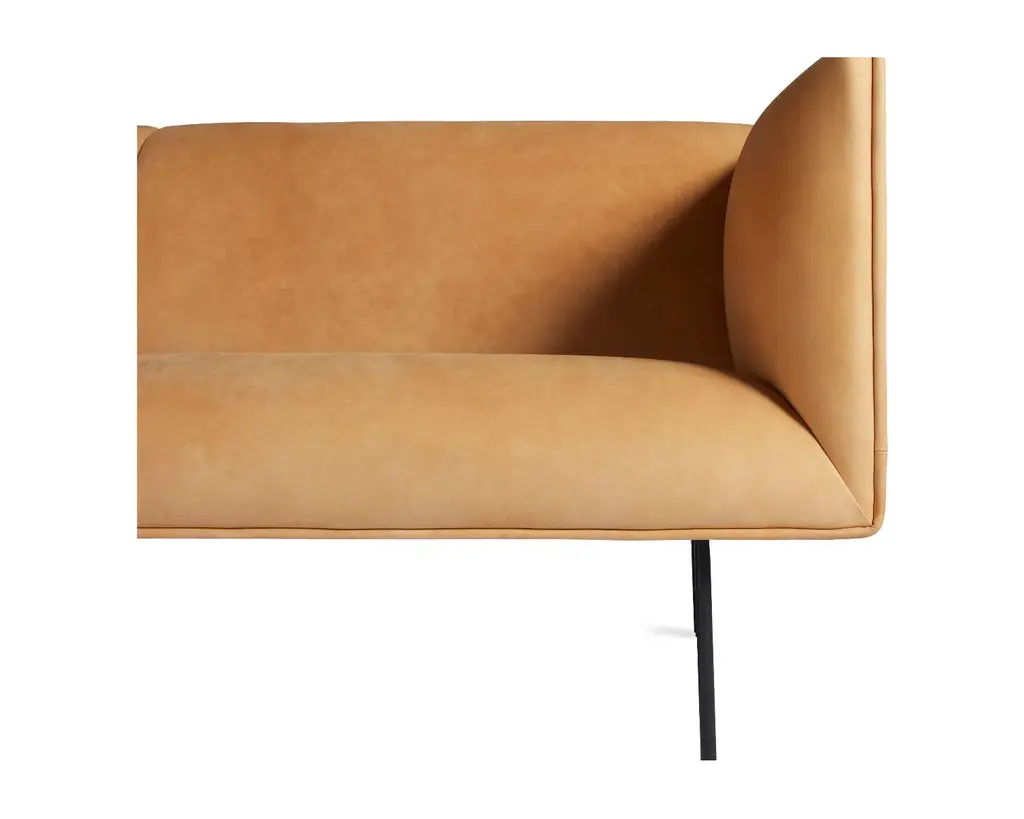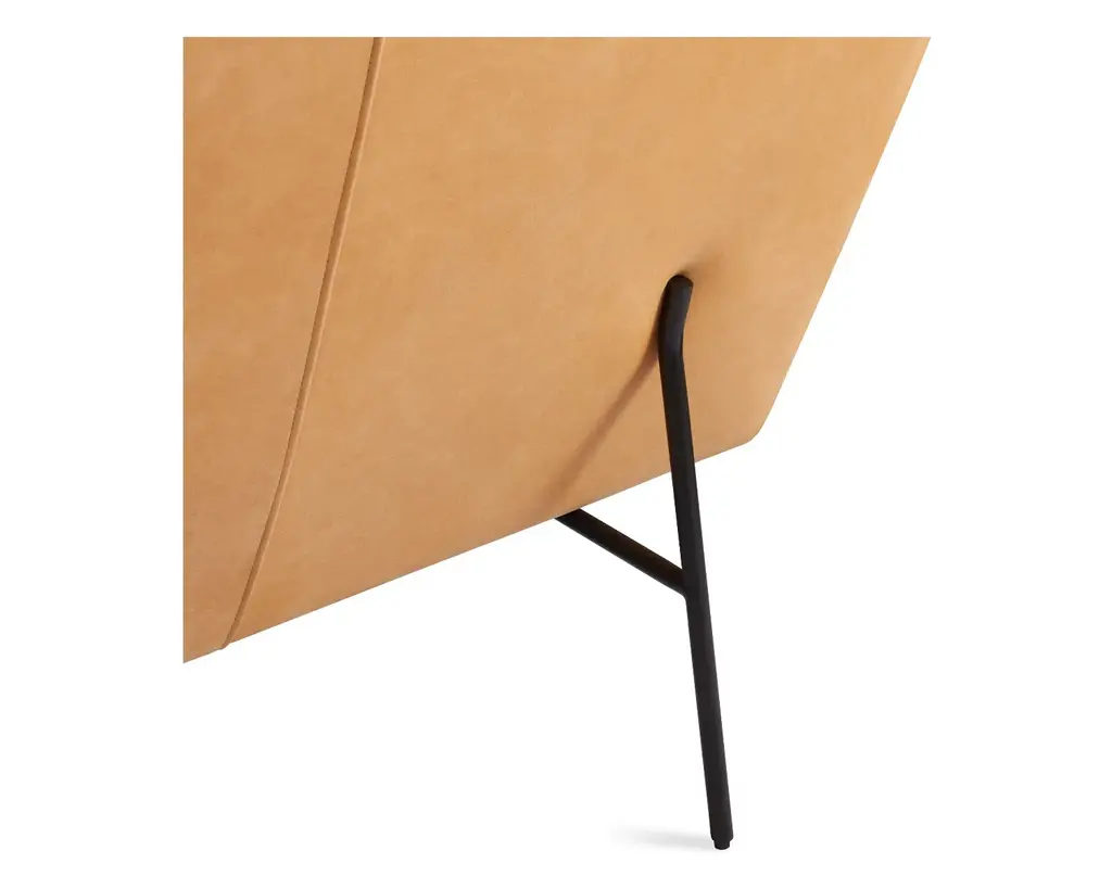 High-backed and leggy beauty in search of willing participants for a relaxing and elegant seating encounter. Experience not required. Must be into tight backs and seats. With a piped seam detail and tubular blackened steel legs.