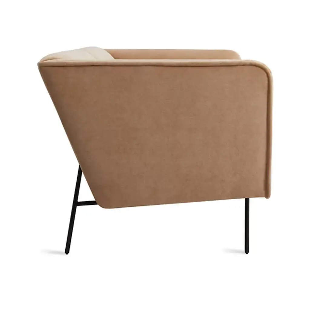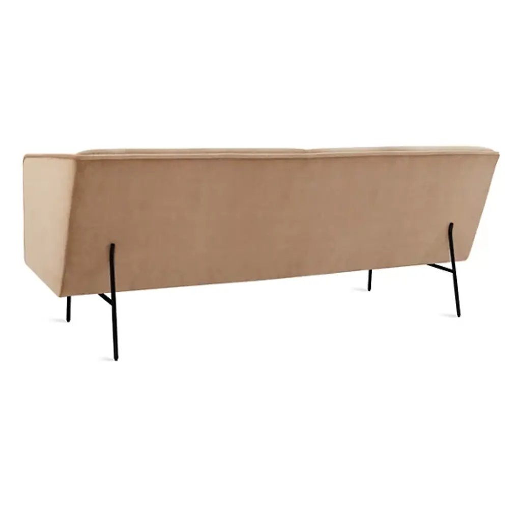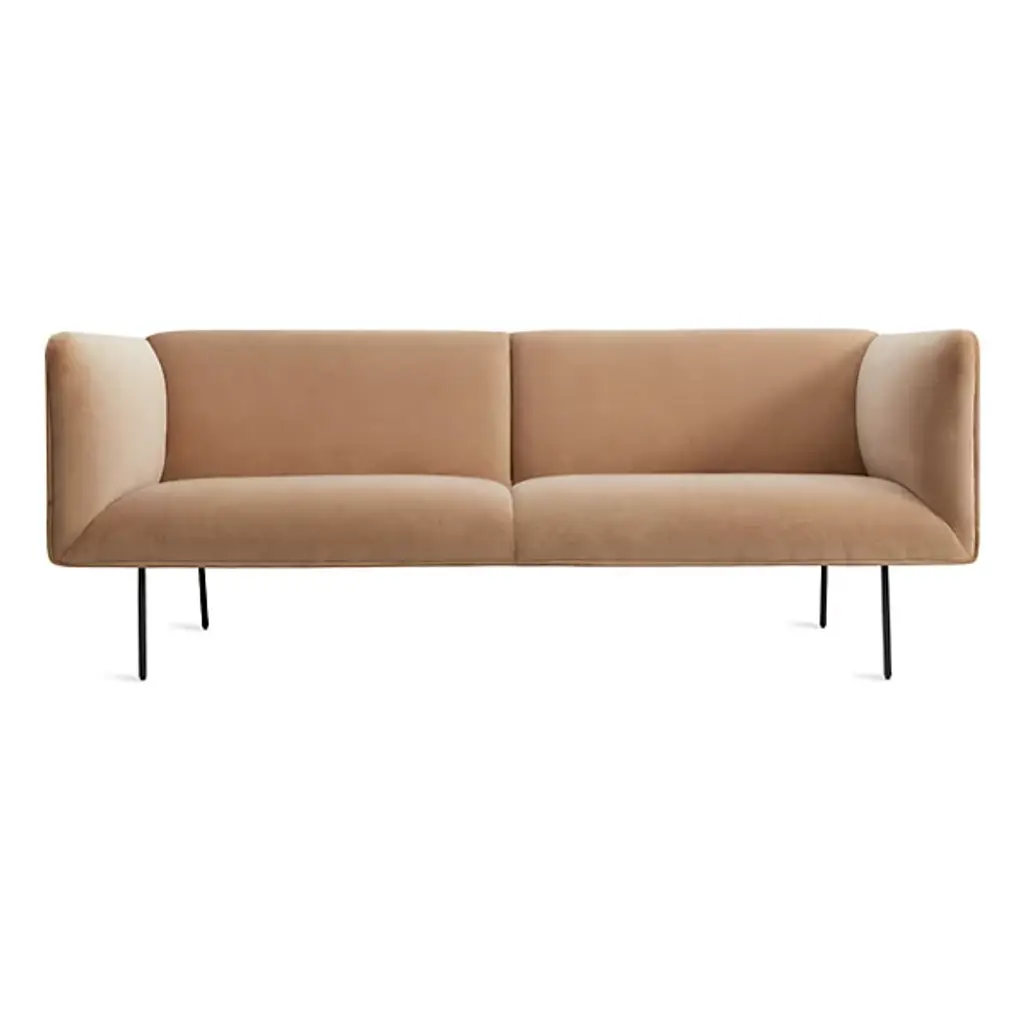 Bring unmatched comfort to the rooms of your delightful modern home with the Dandy Velvet Sofa from Blu Dot. Upholstered with camel velvet – a mix of polyester and cotton – this sofa allows for relaxation in style. The kiln-dried hardwood frame ensures strength at every corner and joint, while the steel springs within provide durable support beneath each cushion. The high back and armrests match the ideal form for the human body, allowing the minutes spent on it to breeze by.
