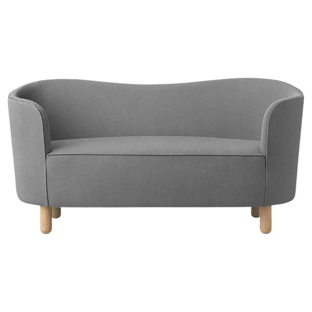 Dark grey and natural oak raf simons vidar 3 mingle sofa by Lassen.Dimensions: W 154 x D 68 x H 74 cm. Materials: Textile, Oak.The Mingle sofa was designed in 1935 by architect Flemming Lassen (1902-1984) and was presented at The Copenhagen Cabinetmakers’ Guild Competition in the same year. It was subsequently praised for its qualities as a small but elegant sofa in the professional journal “The Architect”. Flemming Lassen loved to travel, and he was often inspired by his journeys throughout Europe. He was very taken with both Italy and France, and had a burning desire to tour those countries on his motorcycle. Flemming Lassen wanted to create a sofa made for conversation with a comfort that invited people to stay seated and talk together for long periods of time. The armrests were designed to encircle the sitters, generating intimacy and transforming the sofa into a cosy place to relax. Flemming Lassen took inspiration from both French elegance and modern Italian style, and transferred the trends and his own ideas to a small, upholstered sofa called Mingle.By Lassen is a Danish design brand focused on iconic designs created by Mogens and Flemming Lassen, founded by Lassens’ relatives in 2008. Brothers Mogens (1901-1987) and Flemming (1902-1984) Lassen are known as two of Denmark’s greatest architects and designers. Both were renowned pioneers of Danish functionalism and modernist architecture, honoured with numerous prestigious medals and awards. Headed by Mogens Lassen’s grandson Søren Lassen, By Lassen carries on the brothers’ design philosophy by manufacturing their iconic designs as well as products by other designers that complement the Lassen’s functionalist style. The company’s mission is to continue the tradition of timelessness, functionality and quality, and to introduce the Lassen’s design heritage to new generations.