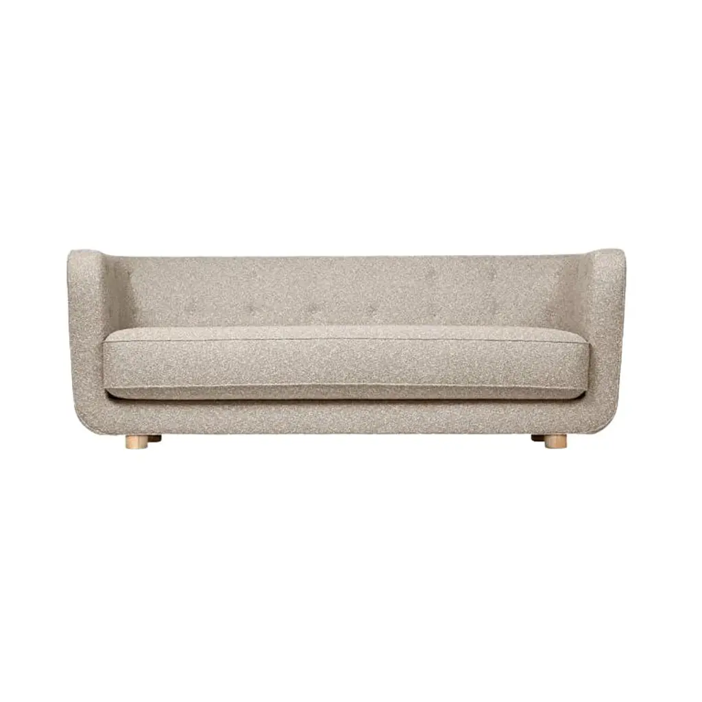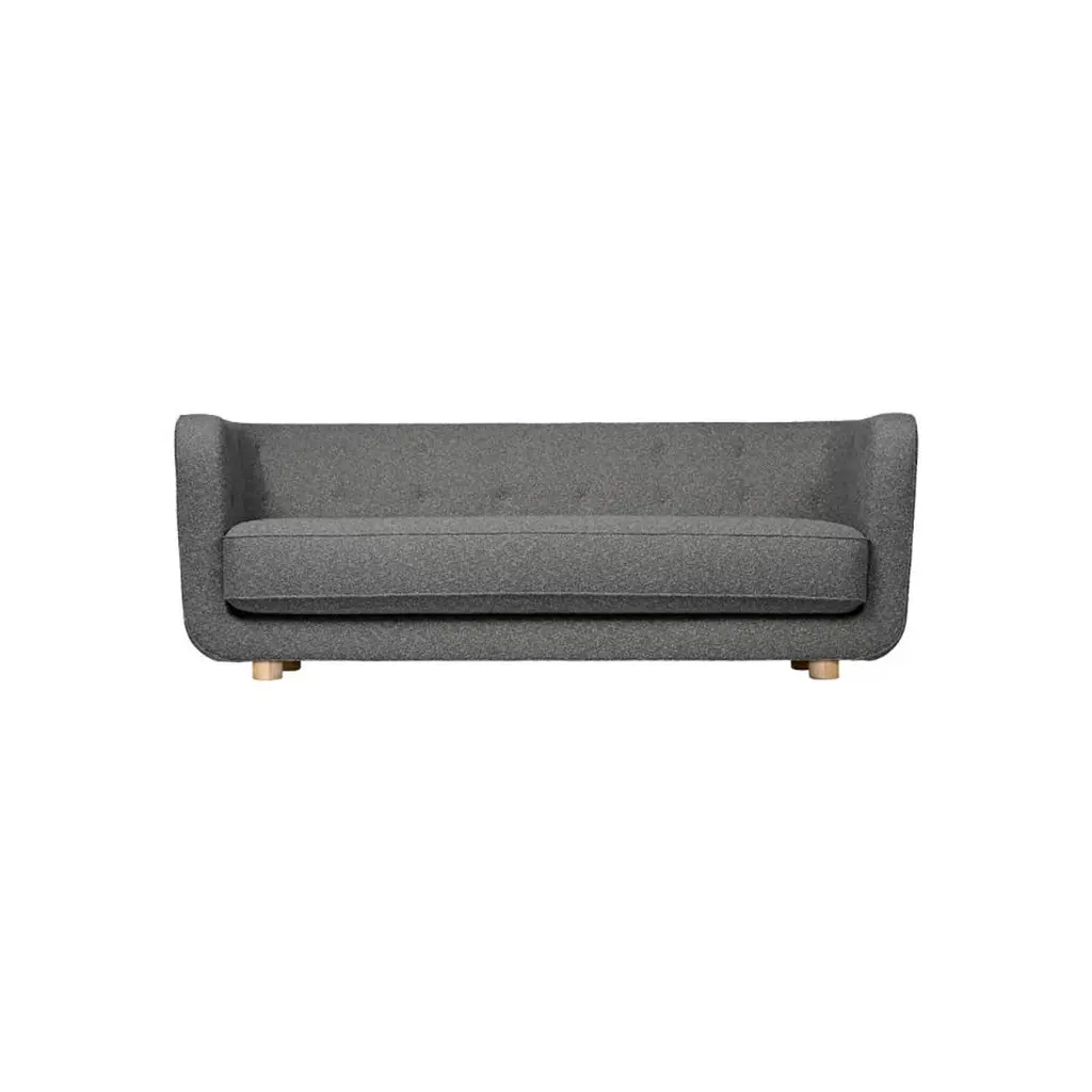 Dark grey and natural oak Sahco Nara Vilhelm Sofa by LassenDimensions: W 217 x D 88 x H 80 cm Materials: Textile, Oak.Vilhelm is a beautiful padded 3-seater sofa designed by Flemming Lassen in 1935. A sofa must be able to function in several ways. It should invite calm and contemplation. Create a private space you can hide in and at the same time invite to life and play. It must be able to withstand sitting on the backrest or on the armrests and then it must be able to stand in the middle of the room if you want to.In addition to being aesthetically beautiful and harmonious, the design makes absolute sense in relation to these parameters.By Lassen is a Danish design brand focused on iconic designs created by Mogens and Flemming Lassen, founded by Lassens’ relatives in 2008. Brothers Mogens (1901-1987) and Flemming (1902-1984) Lassen are known as two of Denmark’s greatest architects and designers. Both were renowned pioneers of Danish functionalism and modernist architecture, honoured with numerous prestigious medals and awards. Headed by Mogens Lassen’s grandson Søren Lassen, By Lassen carries on the brothers’ design philosophy by manufacturing their iconic designs as well as products by other designers that complement the Lassen’s functionalist style. The company’s mission is to continue the tradition of timelessness, functionality and quality, and to introduce the Lassen’s design heritage to new generations.