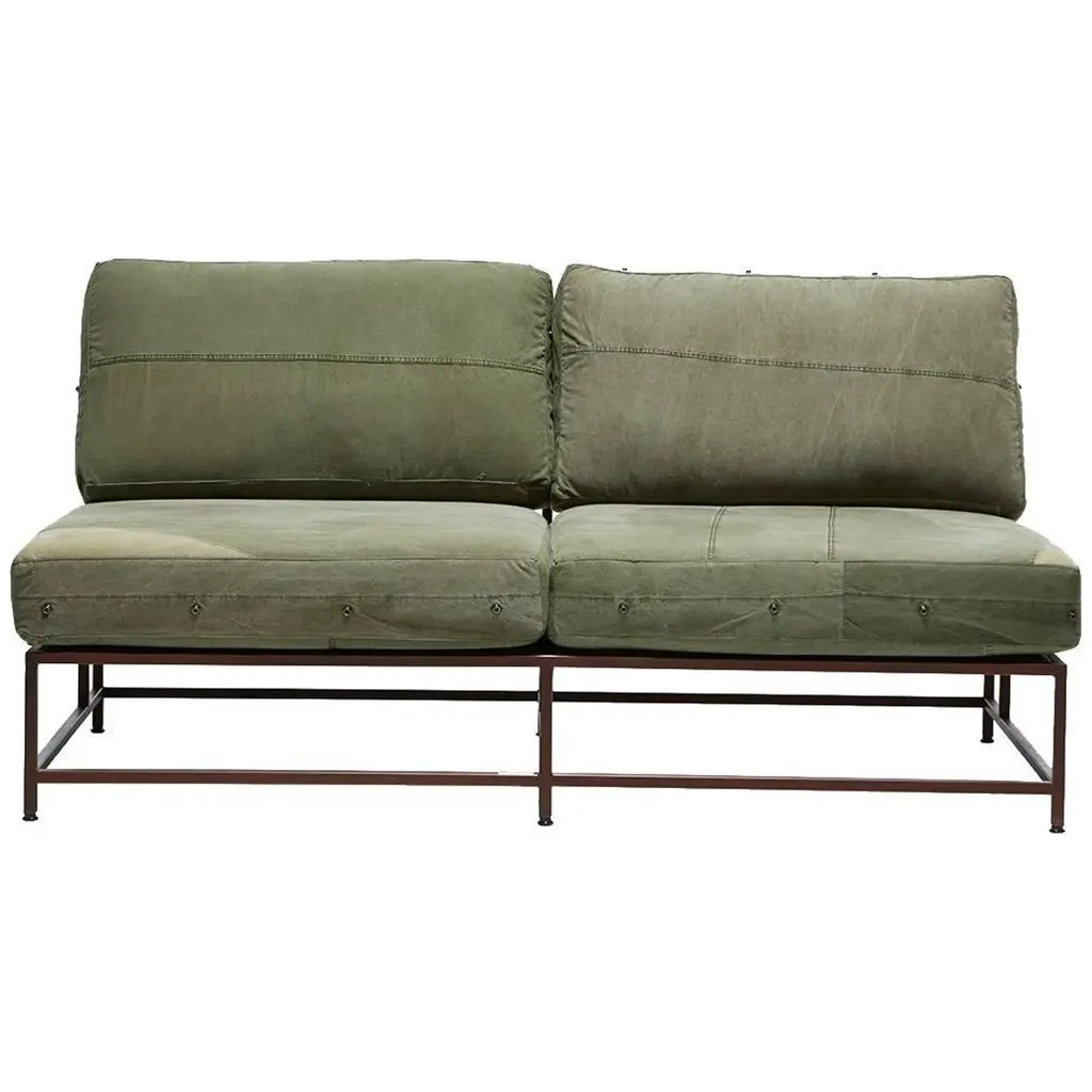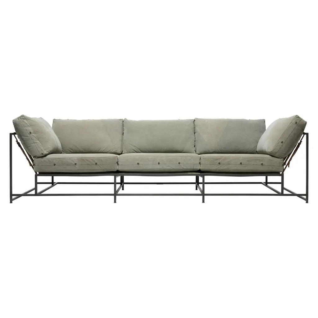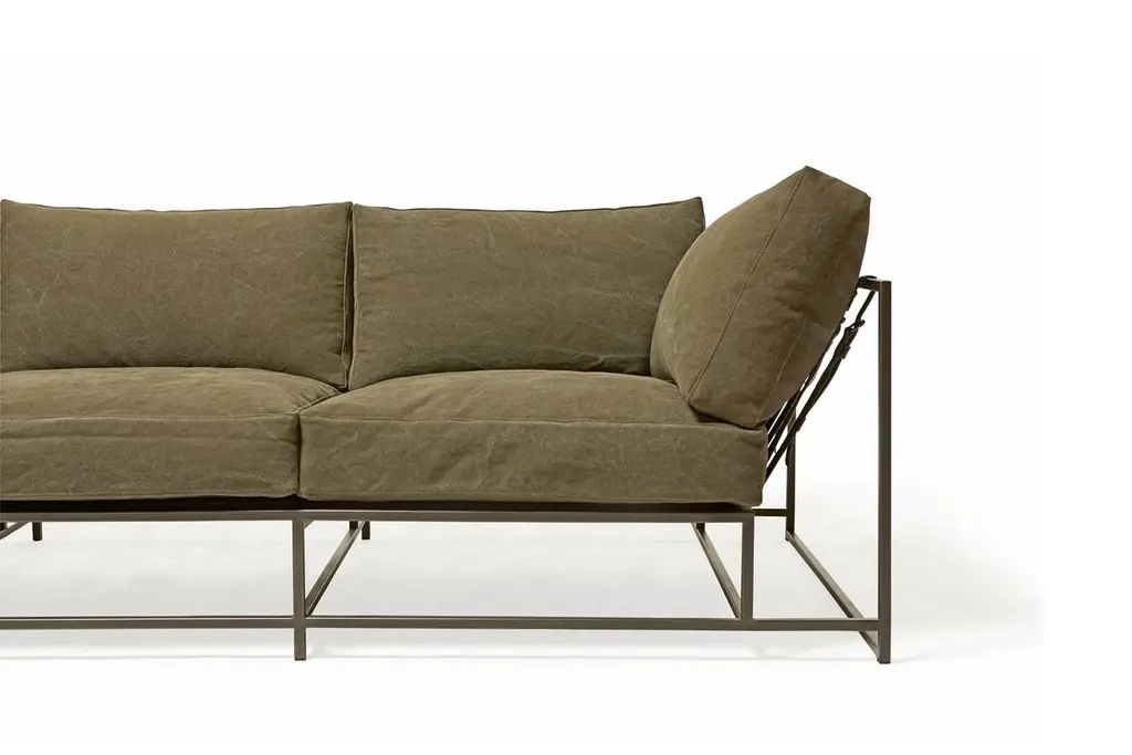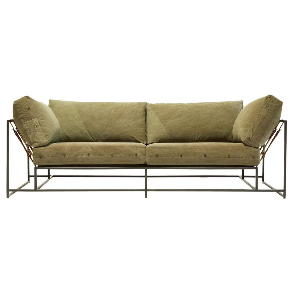 Dark Olive Heavy Canvas And Blackened Steel Sofa