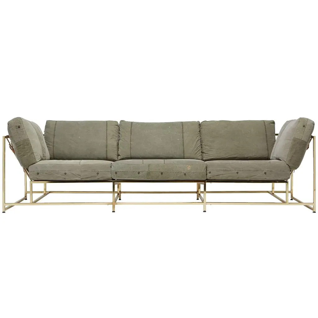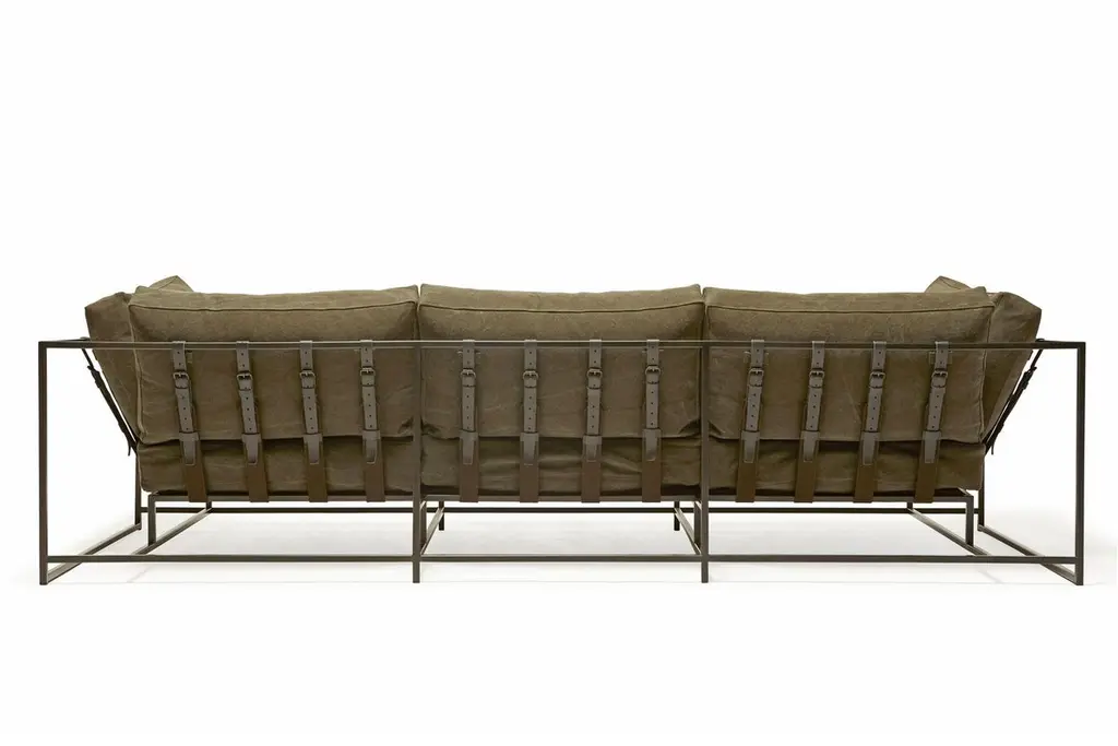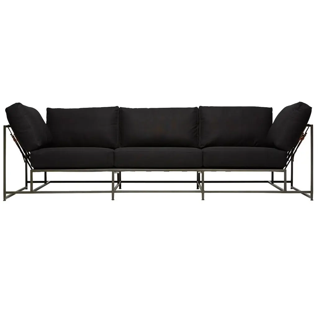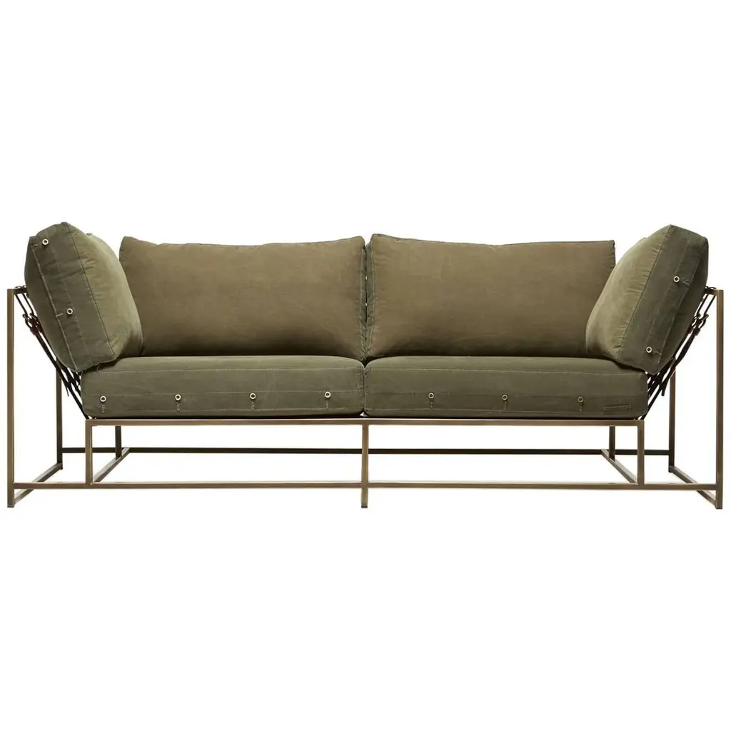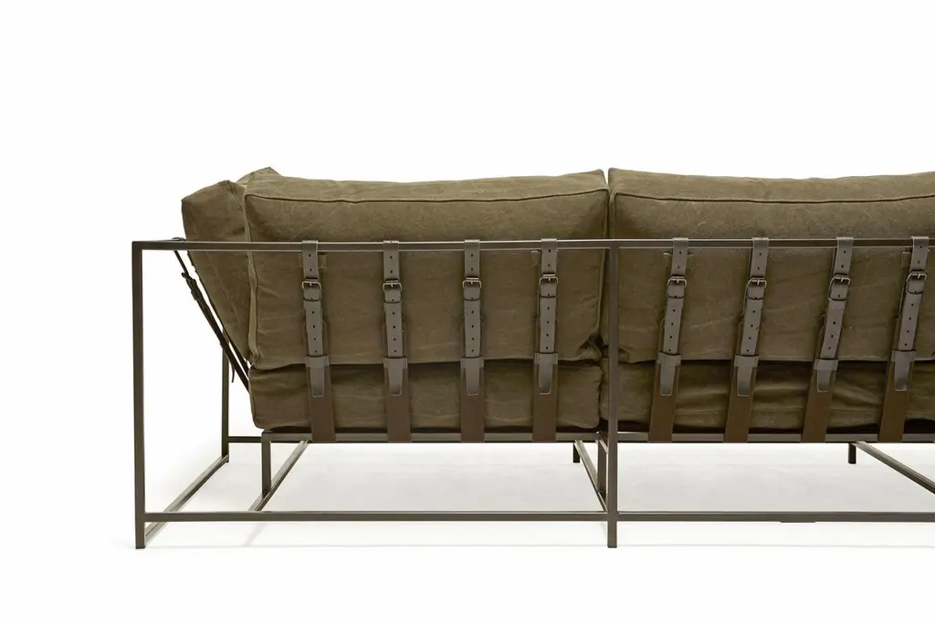 Dark Olive Heavy Canvas And Blackened Steel Sofa