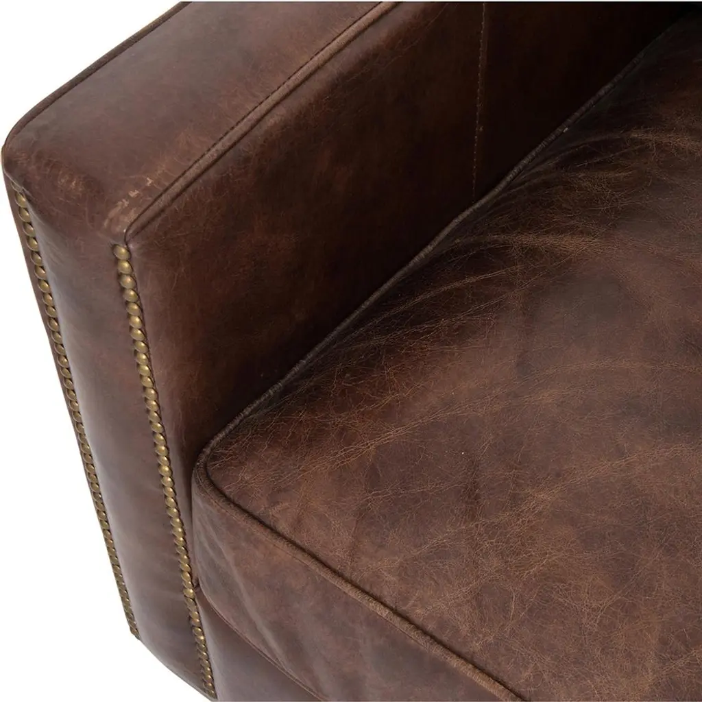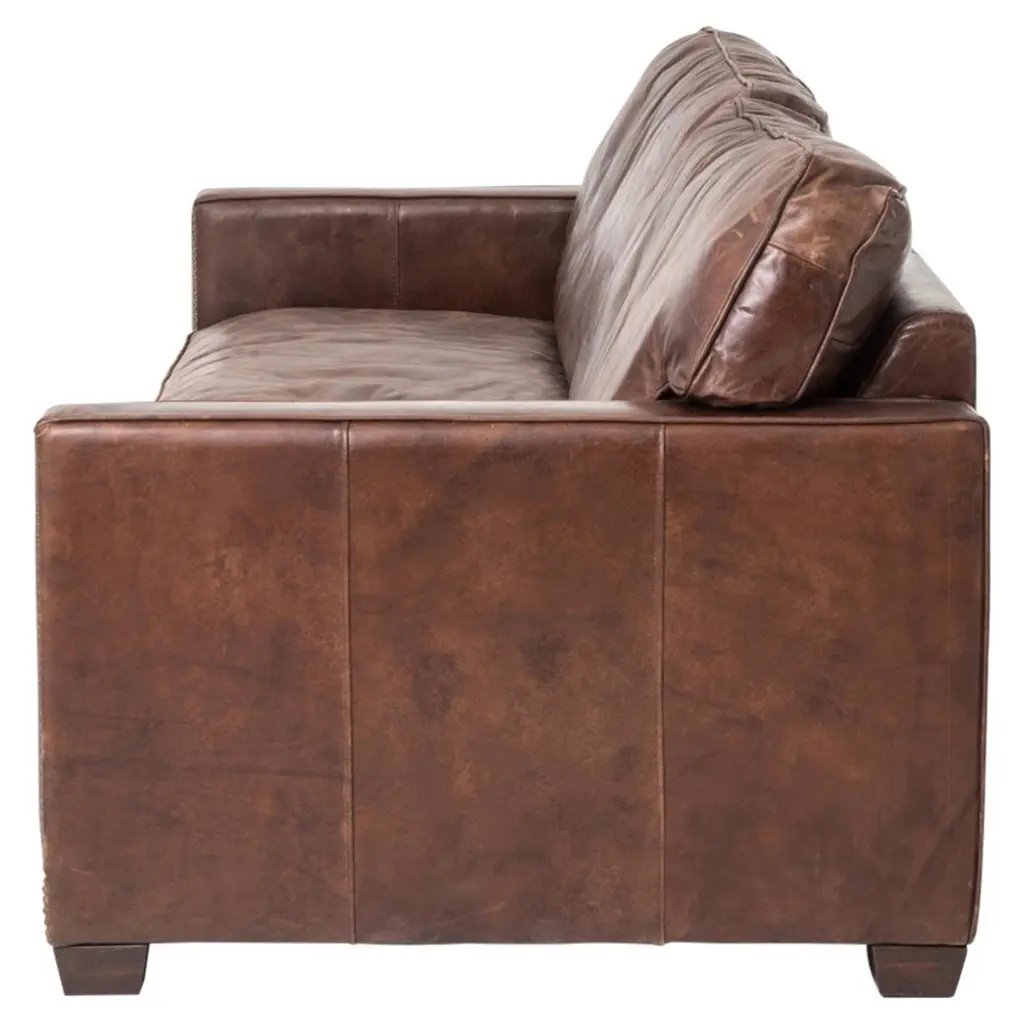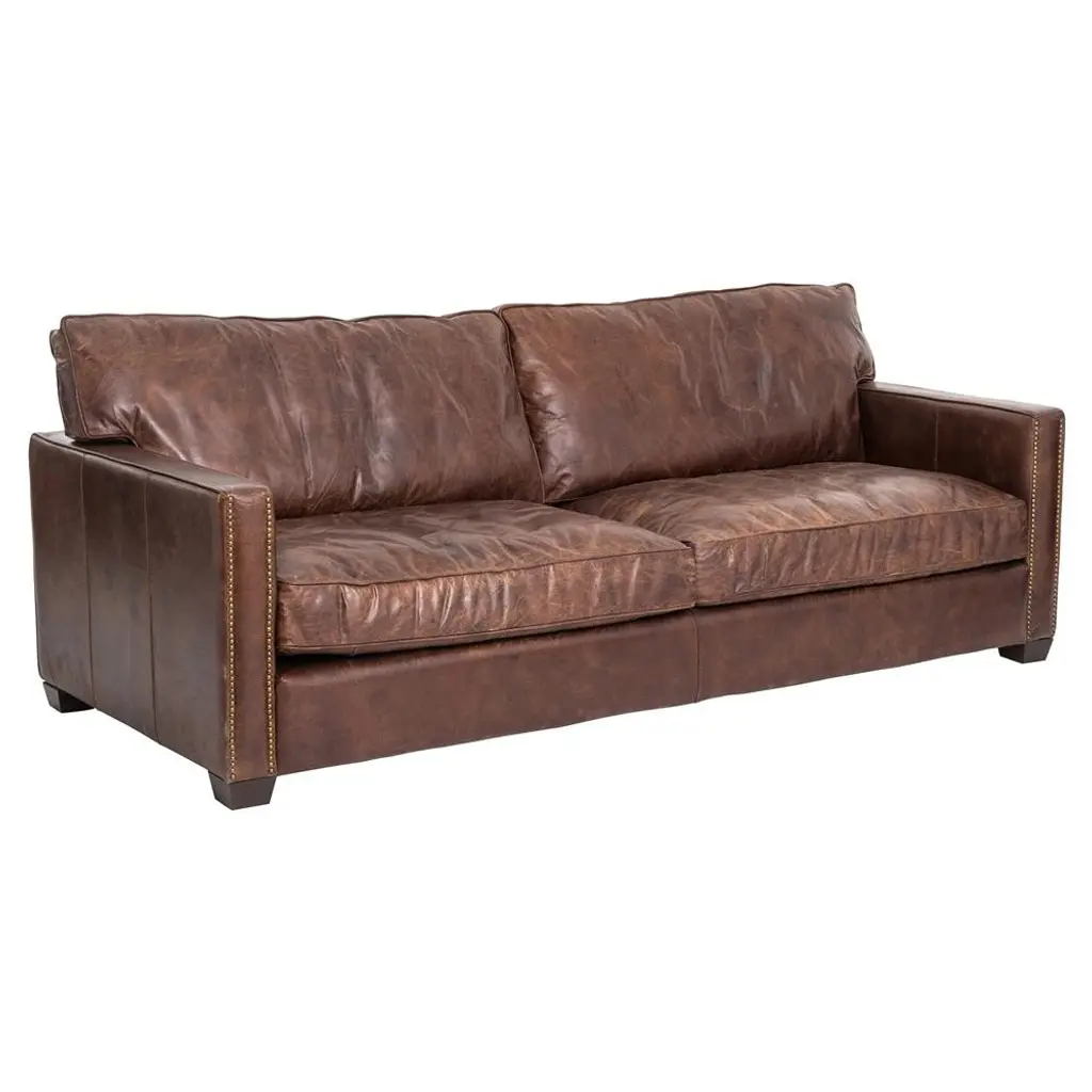 Darla Rustic Lodge Brown Leather Nailhead Sofa - 88"