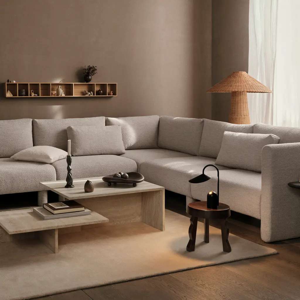 Stylish, comfortable and flexible, the Ferm Living Dase sofa system allows you to design the ideal lounge area for your home. This sofa corner module works perfectly with the center, left-side and right-side modules from the same series. Furthermore, you can pair it with the chaise longue units or the Dase ottoman. Ideal for relaxing or socializing with guests, this sofa system is also crafted with long-lasting use in mind. It features an FSC-certified wood structure, thick PU foam filling, and a high-quality bouclé textile upholstery. As for the legs, they’re made of solid birch with matching upholstery or dark stained oak – both options are included with the Ferm Living Dase Sofa Corner.