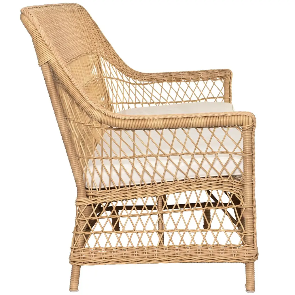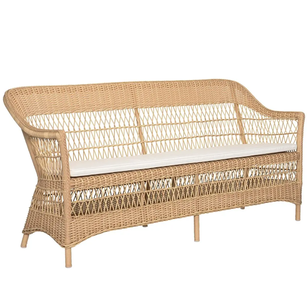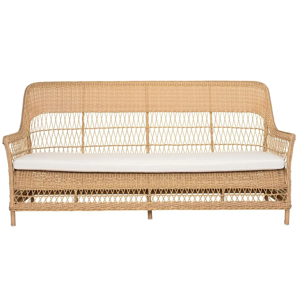 The Dawn Outdoor 3-Seater Sofa by Sika Design is inspired by vintage photos of posh summer estates. Showcasing an airy, decorative woven back and apron, the sofa imparts the look of classic wicker. The frame is AluRattan™, a lightweight weatherproof aluminum, woven in maintenance-free polyethylene ArtFibre™ wicker. Combining an elegant aesthetic with all-weather protection, the Dawn 3-Seater is a practical, durable addition to a garden or patio.