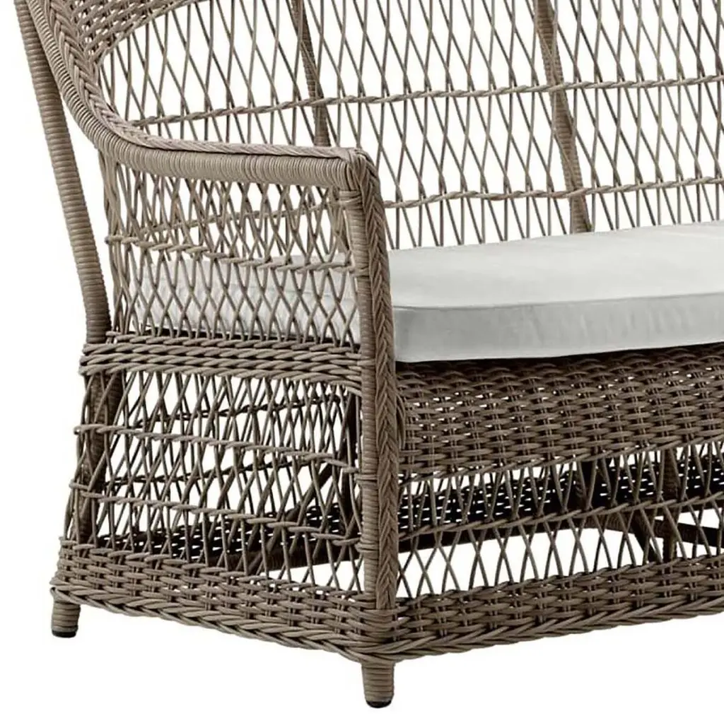The Dawn Outdoor 3-Seater Sofa by Sika Design is inspired by vintage photos of posh summer estates. Showcasing an airy, decorative woven back and apron, the sofa imparts the look of classic wicker. The frame is AluRattan™, a lightweight weatherproof aluminum, woven in maintenance-free polyethylene ArtFibre™ wicker. Combining an elegant aesthetic with all-weather protection, the Dawn 3-Seater is a practical, durable addition to a garden or patio.