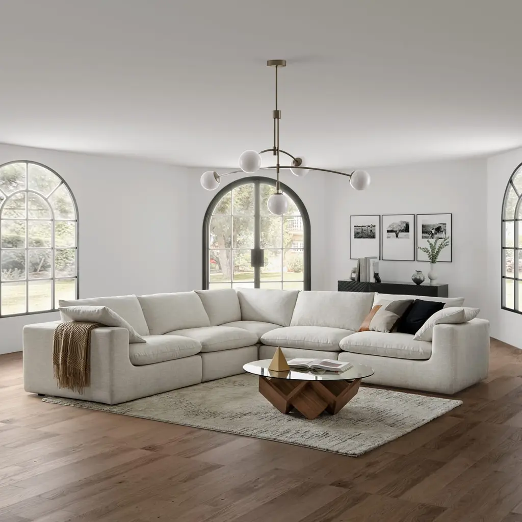 Light and airy with feather-filled cushions, the Dawson's appearance is aligned with the cloud-like lounge experience it offers.