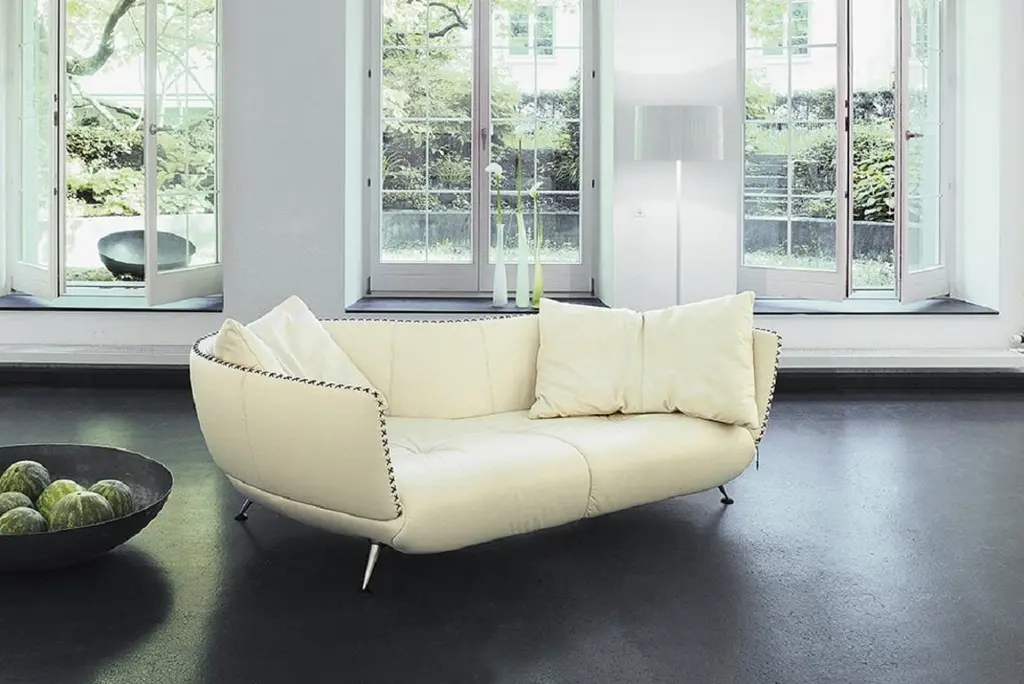 A series with an eye-catching, core leather lacing. This model series’ softly upholstered shell with its extremely comfortable cushions creates an island in the living space. Whether as a sofa, armchair or stool, it invites to relax and to dream. Available as a Recamier sofa and with contours extending to the left or right at the owner’s option, the DS-102 series conveys modern generosity and hospitality. The eye-catching, criss-cross core leather lacing accentuates the appeal of the form.This is about the eternal question between the sexes: who knows better? Who’s right? At De Sede, we know the answer: women! And the backstory goes like this: when launched in 1997, DS-102 was polarizing at its first in-house presentation. Some were totally excited, and others were skeptical. On that very day, an important dealer came to visit - apparently the balance of power, as the retail partner added his vote to the opposition: “There’s no way anyone’s going to buy something like that!” But his wife took a completely different view: she loved the extraordinarily round and feminine form of the piece of furniture. Her persuasion turned her husband around, too, and he became convinced of the exclusive language of design, changed his mind and advocated the launch of the unmistakable DS-102, which has retained its soft and embracing form to this day: sofa, armchair and stool, all made from the same mold.Additional information:Material: LeatherCategory: Naturale - EspressoType: Natural Nappa leatherThickness: 1.5 to 1.7 mmCharacteristics: Unquestionably the most authentic form, a leather possessing all the positive properties of the natural material - exceptionally soft and supple and with an almost silky feel. Its original character is emphasized by subtle differences in color intensity. Naturale undergoes visible ageing and over the years and takes on a distinct patina - a surface with a story and personality.Dimensions: 235 W x 135 D x 77 H cmSeat height 41 cmAvailable in other upholstery options: Select, living, touch, club, coloral, craft, velour.