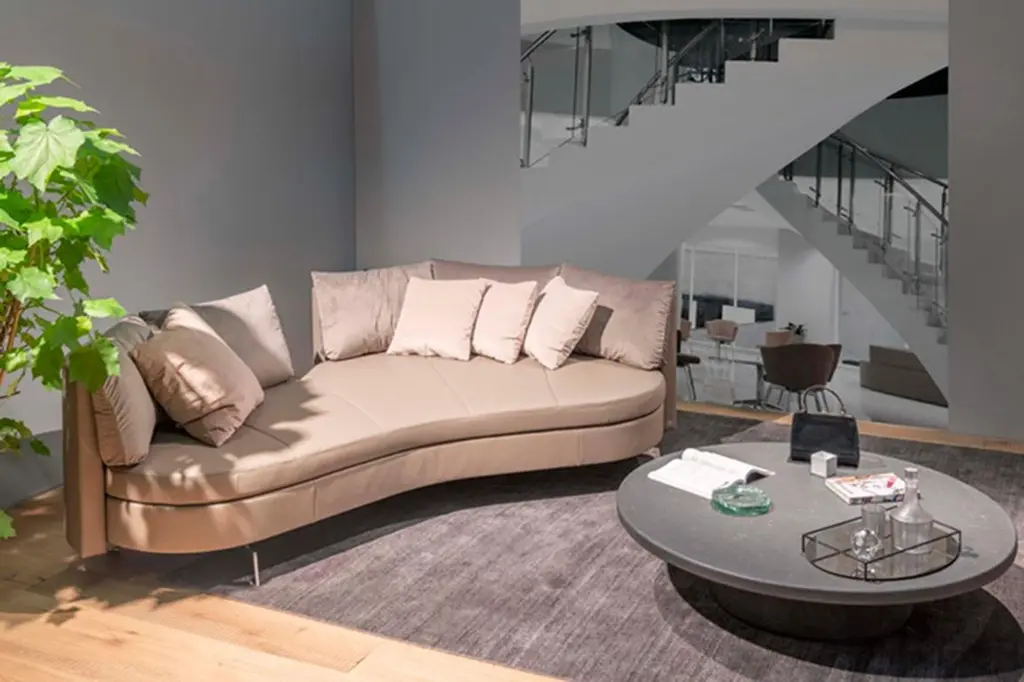 Modular seating system with movable backrest in the further development of the modular seating system, the organic form of the sculptural body grew more filigree, slenderer and more modern. Instead of the swiveling metal sheets, a high-quality plastic sheet that can bend in all desired curves now ensures that the movable backrest can easily be positioned around the entire seat, in whatever fashion happens to fit.It’s like a car: no matter how good the sales figures are, after ten years on the market, it’s time for a general overhaul. Which is why, just a few years after the successful launch of the DS-164 and DS-165 series, De Sede came knocking at Hugo de Ruiter’s door again. The assignment was clear: further development of both models, including new materials. “I regard furniture as a third skin,” says the Dutchman who stands for meaningful innovations and pushes for sustainable manufacturing processes. He lived up to this when he rethought his two series: instead of the swiveling metal sheets, DS-167 uses a high-quality plastic sheet that can bend to create all the needed curves and can serve the highest individual needs while revolving around the seat. Together with the stricter contours and slenderer legs, DS-167 has finally become what it is today: a bestseller.Additional information:Material: LeatherCategory: Select, SchieferType: Nappa leather, lightly pigmentedThickness 1.2-1.4 mmCharacteristics: Elegant in appearance, particularly durable, less sensitive to humidity, spots and light exposure thanks to an easy-care finish. Living unites practical considerations with a high aesthetic.Dimensions: 236 W x 149 D x 75 H cmSeat height 42 cmAvailable in other upholstery options: Living, touch, natural, coloral, craft.