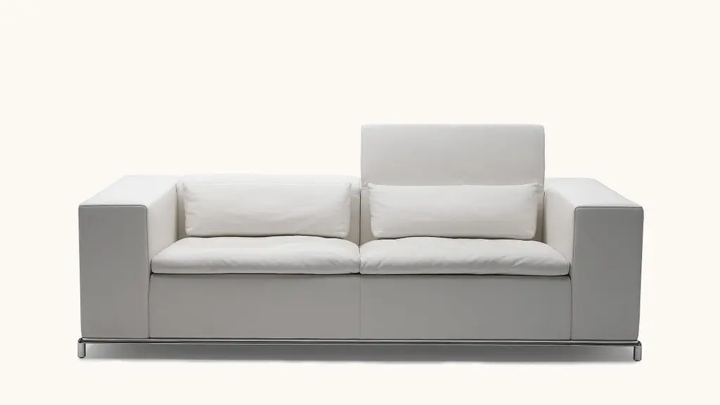 A strong interpretation of the lounge idea; timeless everyday object and showpiece at the same time. The high seating comfort and the many possible uses are striking. Clear contours with a unique, hidden function: the low backrests can be folded up as required, providing optimum seating comfort.Additional information:Material: LeatherCategory: Select - SnowType: Nappa leather, lighty pigmentedThickness: 1.2 to 1.4 mmCharacteristics: Meticulous processing preserves the natural quality – with a characteristic pattern of creases, grain and pores. After tanning, it is dyed with a special finish to maintain the natural aura while also offering improved protection. It undergoes visible ageing, lending it an endearing patina.Dimensions: 215 W x 99 D x 84 H cmSeat height 40 cmAvailable in other upholstery options: Living, touch, naturale, club, coloral, craft and velourAvailable in different size option: Two-seat and Four-seat.