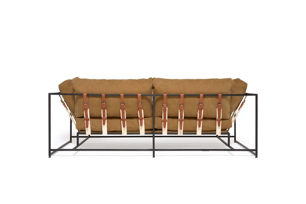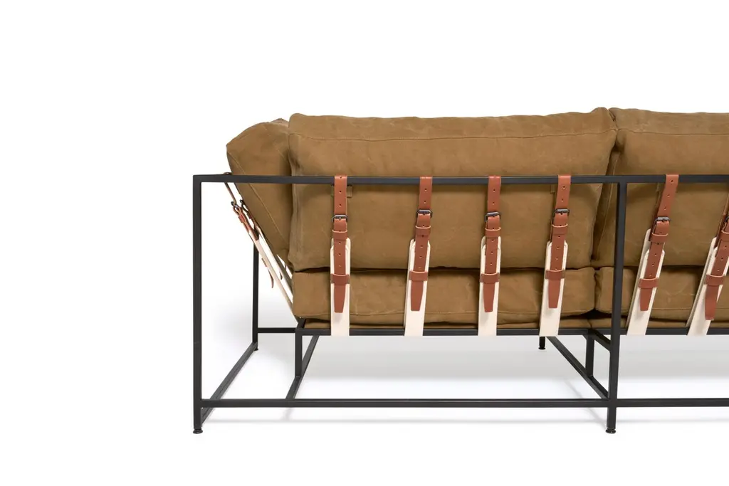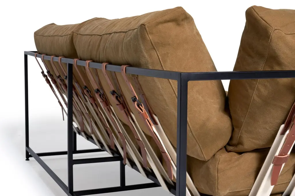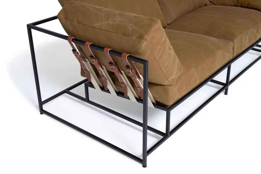 Deadstock Tan Canvas And Blackened Steel Two-Seat Sofa