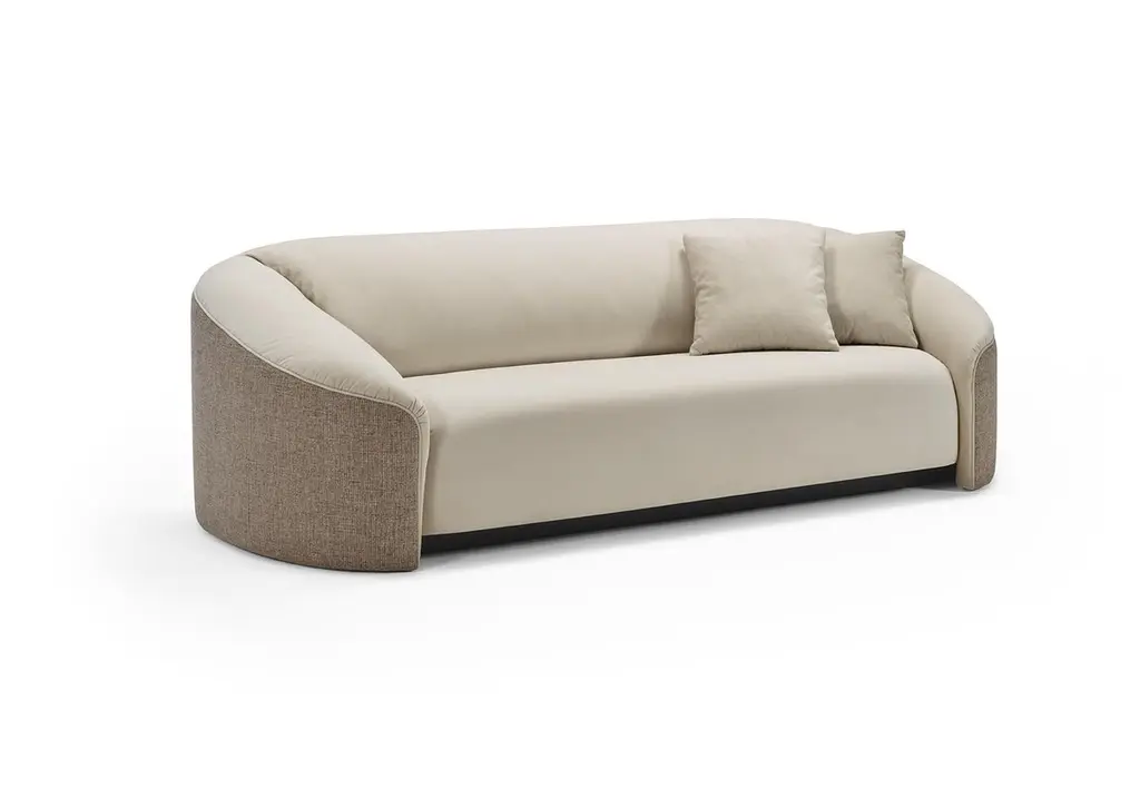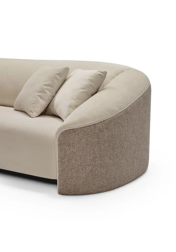 The curved DEAN sofa was designed to provide a superior comfort feeling. The enveloping structure and the balanced combination of feathers and memory foam will embrace you on a moment of trully relaxation. Dean is available to order with a matching or contrasting back texture for an exclusive result.Shown upholstered with Paris Cream (fabris Cat. A) and Necessaires Melange 01 (fabric Cat. B)Price for different fabrics/diemensions on request