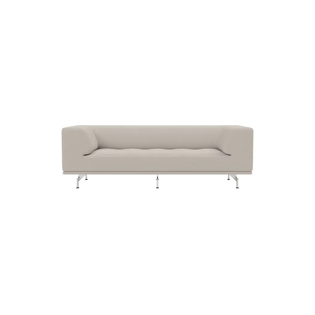 A distinctive curve flowing from the armrests defines the Delphi Sofa, creating a continuous, cushion-free seating area that emphasizes both comfort and visual clarity. Built with a wooden inner frame, nozag springs, cold-cured foam, and a down-foam granulate duvet, it offers enduring support. Upholstered in fabric or leather, the sofa rests on a base in brushed aluminum or solid wood. Available in 3 sizes, it can function as a standalone piece or integrate seamlessly with Delphi Elements modules for customized configurations.