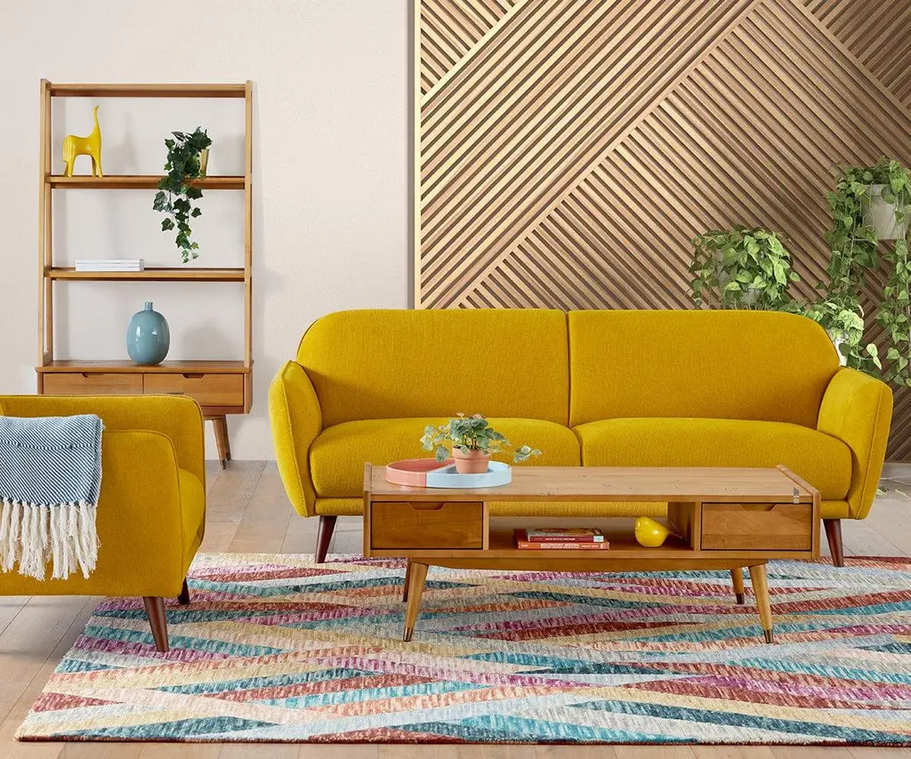The Deni Sofa elevates your space with a distinct mid-century design. Tapered, angled legs bring this piece off the ground in a refreshing, airy manner, while textured fabric lends your space dimension and eye-catching style. While the refined frame of this piece is well-suited to smaller areas, this sofa makes a statement wherever placed. A welcome pop of color for any room, this sofa also features wonderfully plush, comfortable seating. Pair with the Deni Accent Chair in a living or family room for a rounded seating arrangement, or enjoy the many stylistic benefits this sofa brings all on its own.