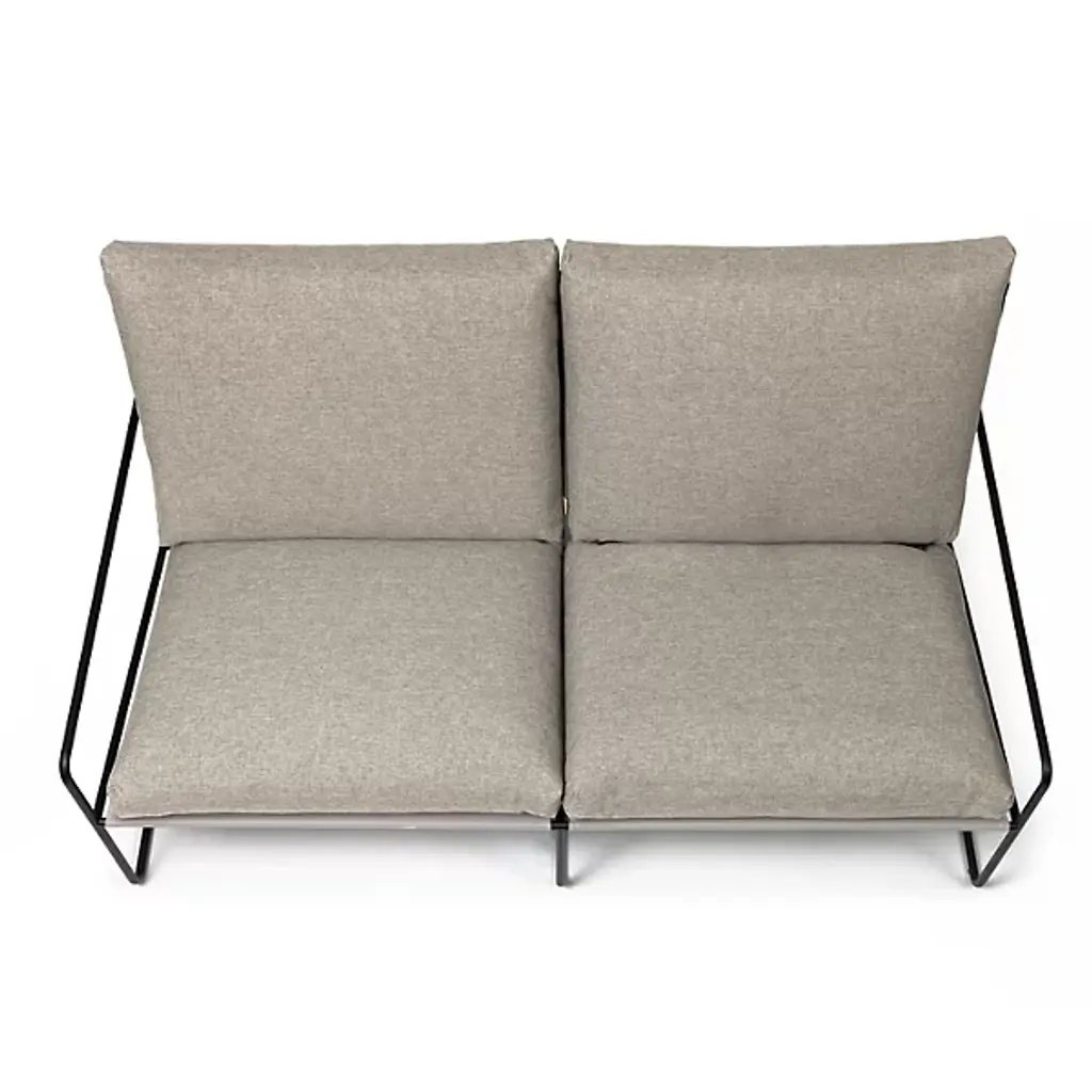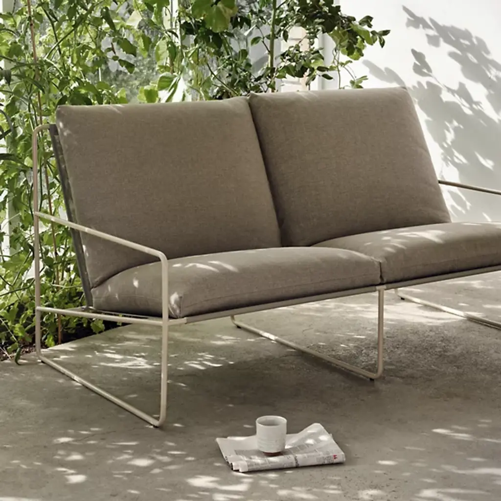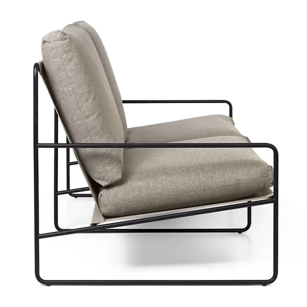The Desert 2 Seater Outdoor Sofa by Ferm LIVING imbues its environment with inviting warmth, prompting you to unwind in style. Perfect for outdoor leisure, it offers generous seating for basking in the sun, reading, or socializing. With a minimalist contemporary design imbued with a hint of retro charm, this sofa features a robust electro-plated steel frame that resists rust, promising enduring durability outdoors. Its fabric blend upholstery, coupled with water- and UV-resistant cushions, ensures both comfort and functionality, making outdoor relaxation a breeze.