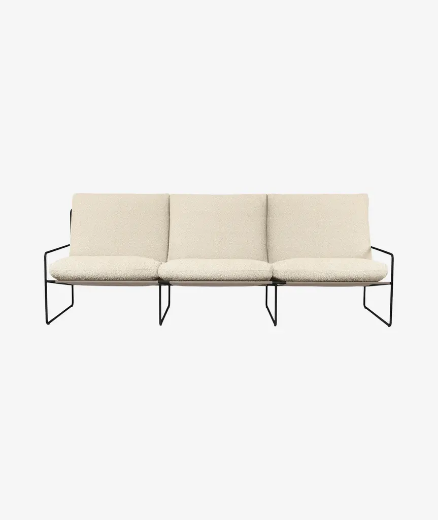 Summer equals relaxation and quality time spent in serene outdoor settings. Create an inviting lounge area with the Desert Sofa, where there is plenty of room for sunbathing, reading books and entertaining friends and family. With the unpredictable weather in mind, the Desert Sofa is designed for outdoor use and is completed with cosy sofa cushions that are both water- and UV resistant. This Desert series is made from a powder-coated metal that has been given an anti-rust treatment, and is suitable for outdoor use. Do be aware, however, that just as with any metal, prolonged outdoor use and exposure to the elements will cause the Desert series to develop rust over time. We therefore advise you to bring your Desert series furniture inside during cold weather – particularly if the temperature drops below freezing.