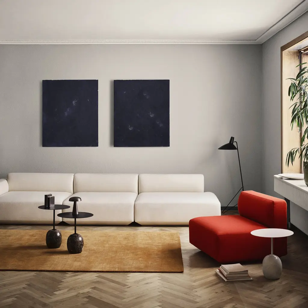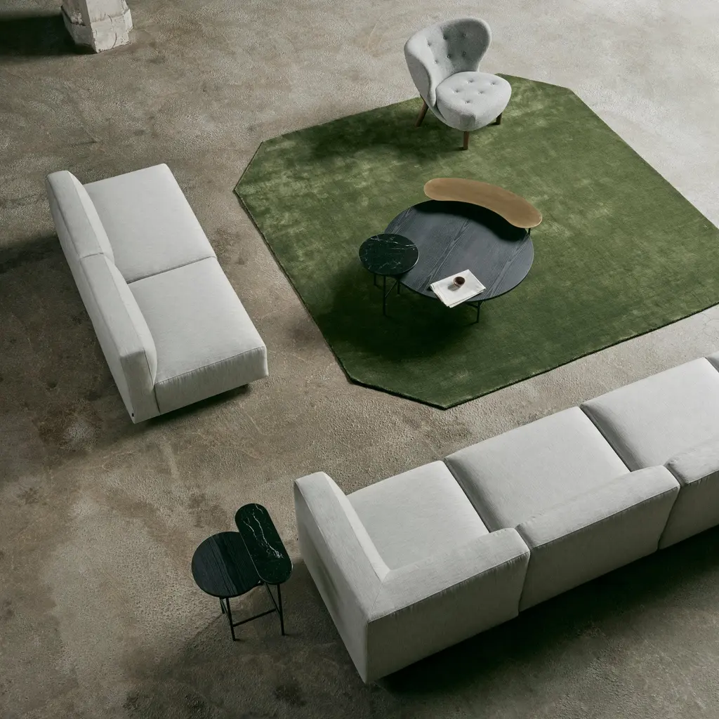 Sort of like enjoying just the cake frosting all by itself, this sofa from Dutch designer Edward van Vliet is all cushions. Develius from Copenhagen's &Tradition incorporates as many as 16 different modular components including sofa seating sections available with arms or without; chaise sections; a pouf or ottoman; and accompanying scatter pillows. "I wanted the entire experience to be like lounging on cushions,†says the designer. With the base angled inward, Develius seems to hover and float above the floor. The total effect is meltingly luxurious and the components can be arranged in more intimate fashion or in a more open and inviting configuration, be it for residential interiors, high-end hotels, restaurants or VIP settings.