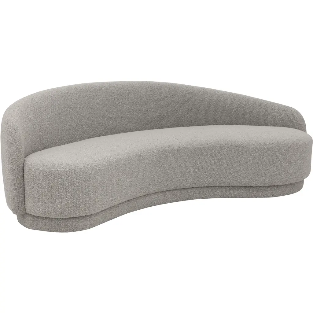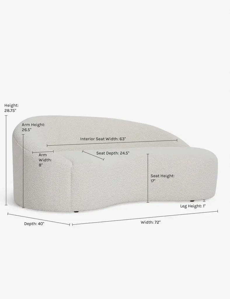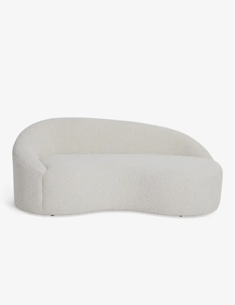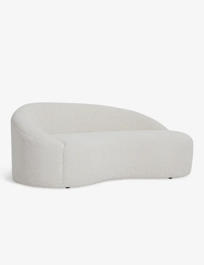 A sculptural silhouette brings a modern edge to this chaise lounge, with its sloping lines and cozy boucle upholstery inviting elegance and comfort in equal measure. We love this stylish chaise for a luxe dressing room or thoughtfully curated lounge.