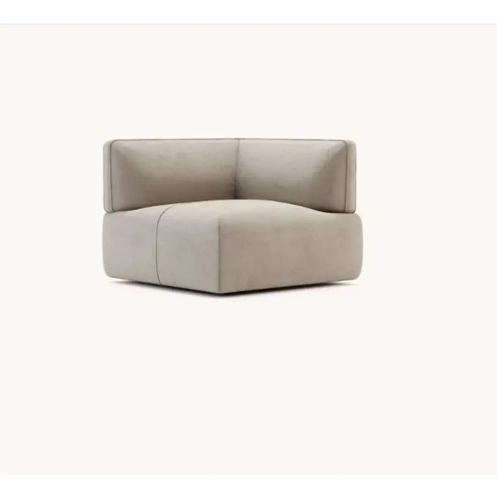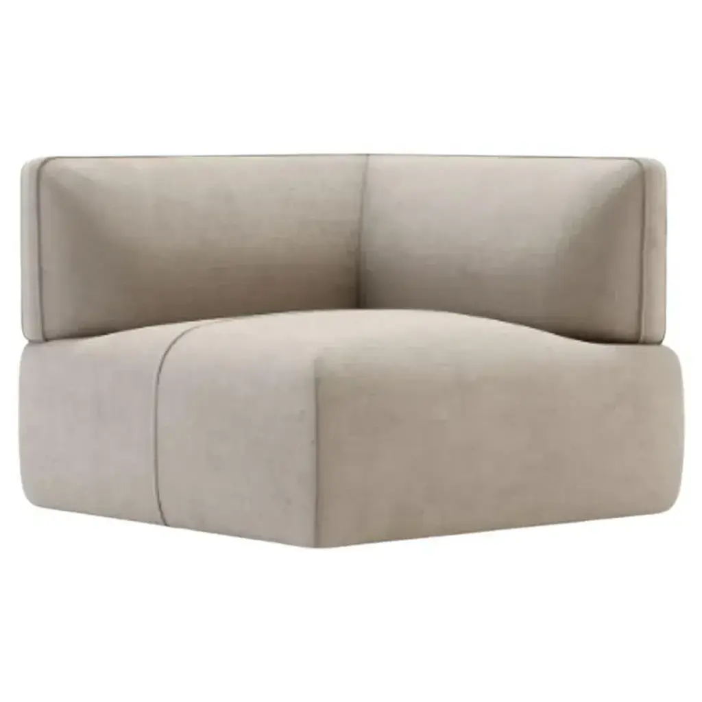 Disruption Module Corner by Domkapa Materials: Velvet (Aldan 2928). Dimensions: W 100 x D 100 x H 80 cm. Also available in different materials. Disruption is a modular sofa, fully upholstered, with minimalistic design and ergonomic proportions. This system includes settees in various sizes, from pouf to chaise longue, that can be combined to create different solutions. The seat is a high cushion and armrests can also be added by choosing the armchair version. Curvy and sophisticated, Disruption sofa creates cozy interiors with seductive lines. Domkapa holds a tremendous passion for detailed stitching, presenting several similarities to the haute-couture philosophy focused on the value of a “made by hand”.