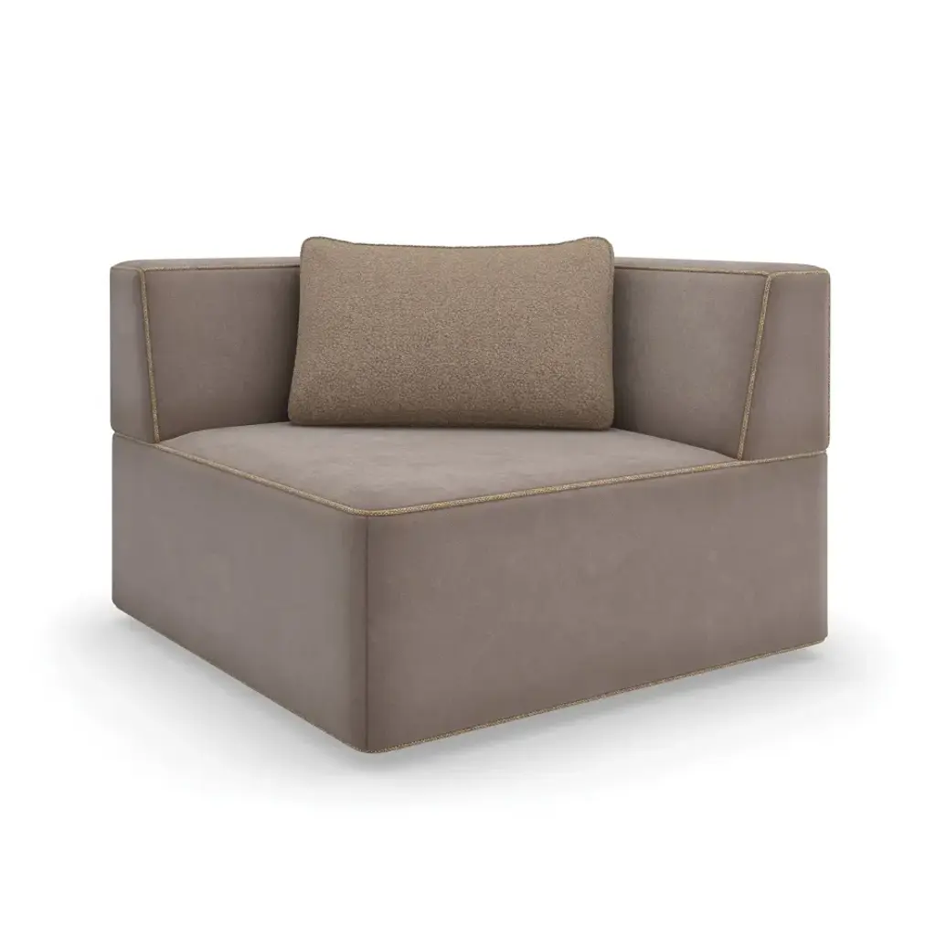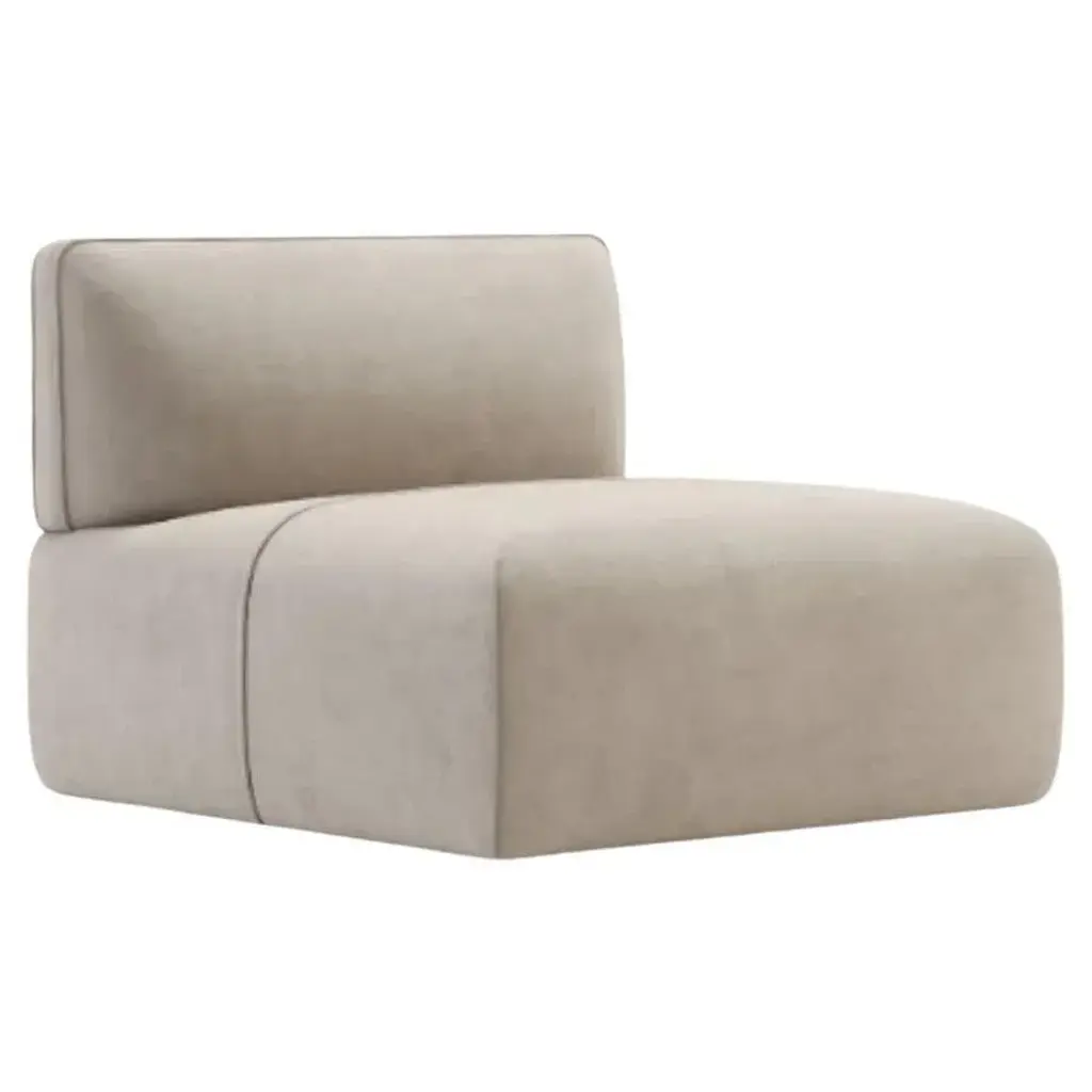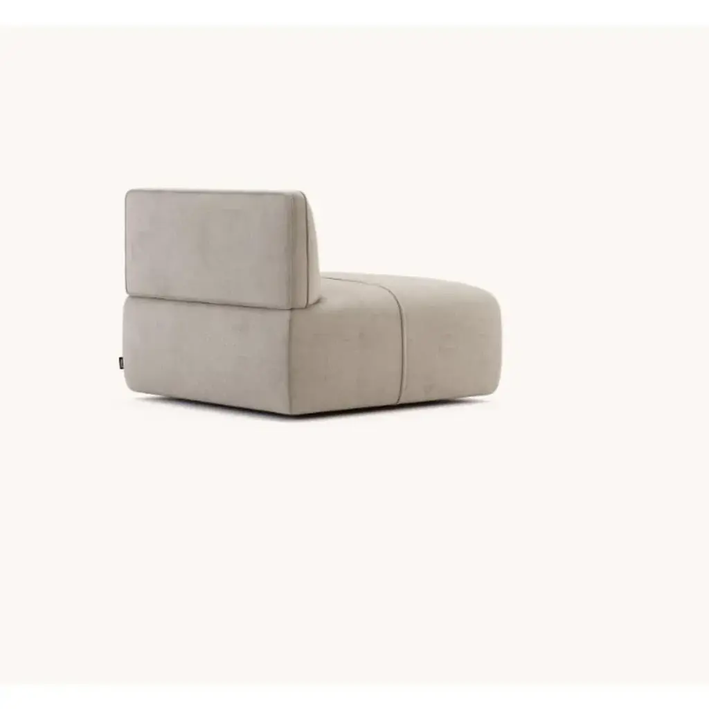 Disruption Module with Back by Domkapa Materials: Velvet (Aldan 2928). Dimensions: W 100 x D 100 x H 80 cm. Also available in different materials.Disruption is a modular sofa, fully upholstered, with minimalistic design and ergonomic proportions. This system includes settees in various sizes, from pouf to chaise longue, that can be combined to create different solutions. The seat is a high cushion and armrests can also be added by choosing the armchair version. Curvy and sophisticated, Disruption sofa creates cozy interiors with seductive lines.