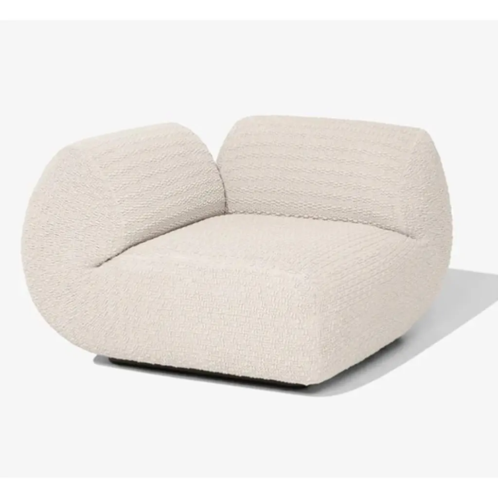 Dobra Module Corner Sofa by WentzDimensions: D 110 x W 110 x H 70 cmMaterials: Modular sofa with wood structure, elastic straps, hyper-soft foam and WE—KNIT covering (70% Recycled PET + 30% Elastane). Base in black painted wood and EVA botton finishing to avoid the modules to slide appart.The Dobra series was created from a natural gesture: folding a soft material. A force is applied to each piece that respects the resistance and density of the foam. It's as if a large cushion curved and paused in time. The exclusive WE-KNIT coating — 3D mesh made from recycled PET — combines a tactile experience, with high resistance to use and sustainability.This is one of the possible modules for the Dobra Sofa and can also be used individually as an armchair.WENTZSILENT AND NATURAL LIVING DESIGNED IN BRAZILBrazilian brand of furniture, lighting and accessories design.We live in silence, contemplating the environments, through pieces that welcome well-being. We seek to give naturalness to living, with harmonic and sensorial simplicities. We express Brazilian uniqueness through our lines, highlighting local materials and technologies.With a contemporary tropical aesthetic, designer Guilherme Wentz's creations reflect the contemplative personality of their creator, connected to nature and obsessed with design. His designs present a new look at living, where each piece conveys a perfect balance between simplicity and functionality.1987 — Guilherme Wentz is born on July 17, in the city of Caxias do Sul, in Rio Grande do Sul, where he spent his entire youth.2008 — Guilherme drops out of the Business Administration course to start a new creative life studying Product Design.2010 — Begins his career as a designer at the Riva objects brand, where he works for two years.2012 — Recently graduated, receives the IDEA Brasil award for his first product on the market, the Officer desk, developed for the São Paulo brand Decameron.2013 — Receives the iF Design Award for his second signed project, the K for Riva Collection, sets up his studio and starts designing for different brands of furniture, lamps and objects.2014 — Moves the studio to São Paulo, takes on the Style Directorship of the Decameron and Carbono brands and is invited to a project commissioned by the São Paulo Museum of Modern Art.2016 — Joins businessman Rafael Gehrke to launch his first independent collection, called "Capítulo 1", which in its first year was already available in some of the main designer stores in Brazil and the United States. In the same year he was named "Rising Talent" by Maison & Objet Americas and received the Museu da Casa Brasileira and iF Design Awards, both for Luminária UM, developed for Lumini.2017 — Named "Rising Talent" at the Casa Vogue Awards. One of his projects, the Post-Tropical Vase , is acquired for the permanent collection of the Lisbon Design and Fashion Museum.2018 — Wentz is named by the New York Times T Magazine as one of the "6 Rising Studios of the Americas."2019 — The WENTZ brand is established for the production and distribution of independent collections and the launch takes place during New York Design Week. In August, the brand's first store opens in São Paulo.