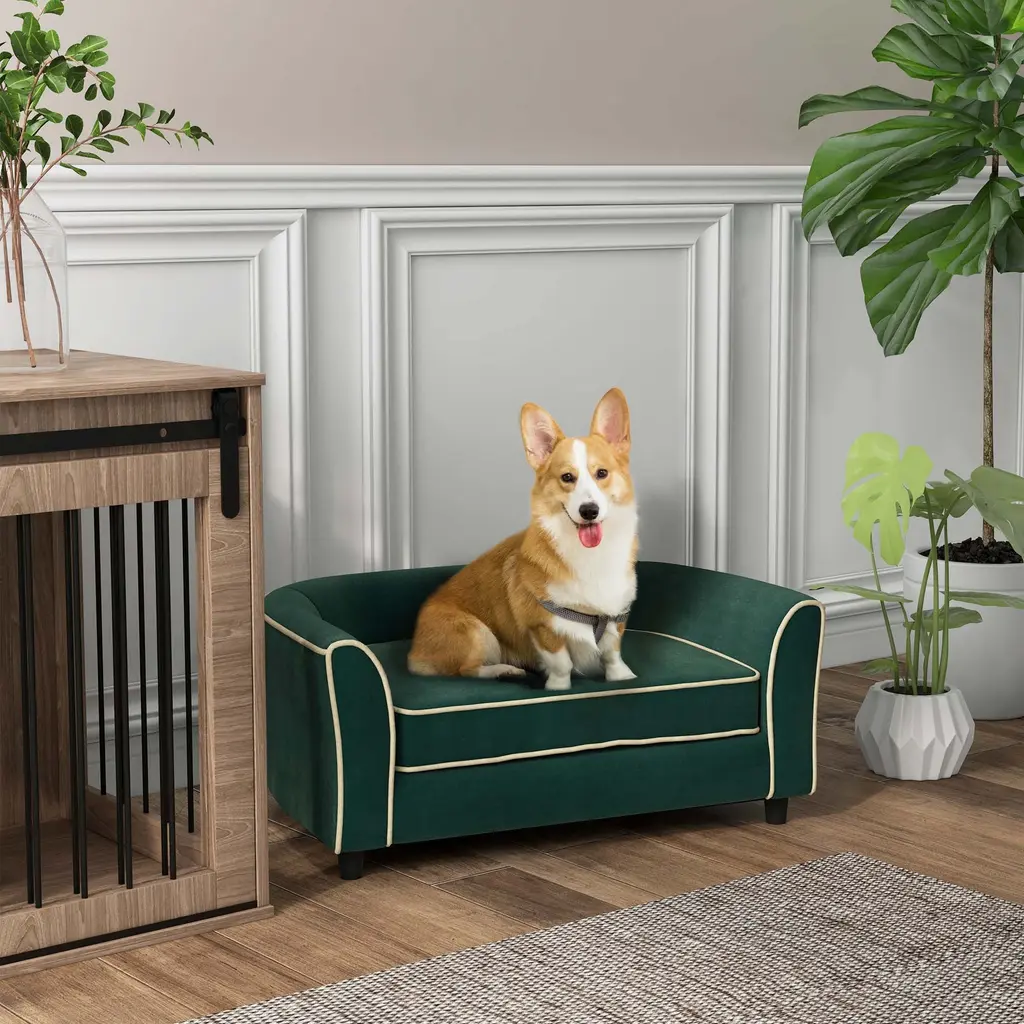 Dog Couch Fancy Pet Bed Modern Dog Sofa - Dark Green