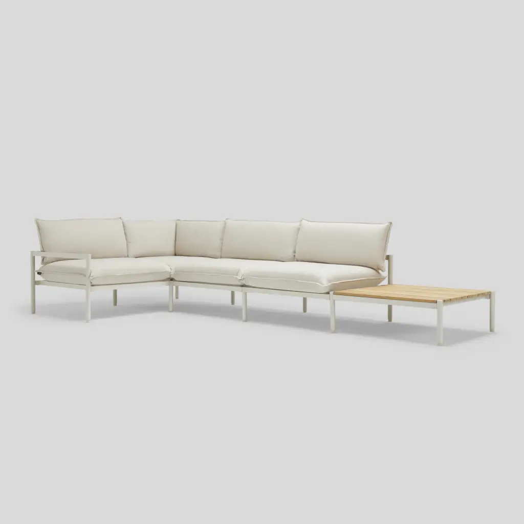 All-weather rattan adds handwoven texture to an architectural tubular aluminum frame. Designed to have great vistas from all angles, Dog Days is what happens when a minimalist goes on vacation and gets in touch their inner hippy. Seat and back feature ravioli style cushions upholstered in high-performance, mildew and fade resistant Sunbrella ® fabric.