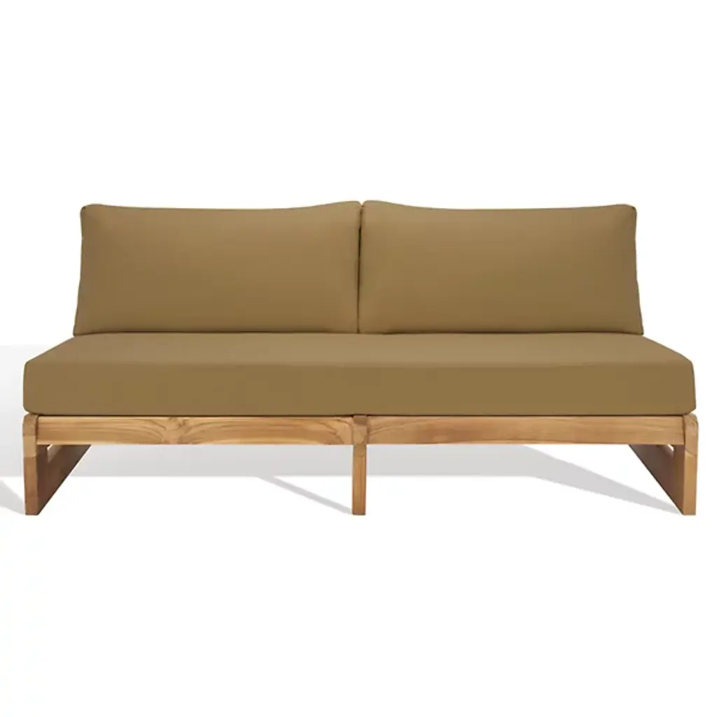 The Donahoe Outdoor Patio Sofa from Alder & Ore channels resort-style comfort with its generous proportions and luxurious cushioning. Brazilian teak construction ensures lasting outdoor performance, while spun polyester upholstery maintains its fresh appearance through the changing seasons. The minimalist frame design allows the natural beauty of teak to shine through while its laid-back profile encourages hours of outdoor enjoyment. The sofa's substantial cushions provide exceptional support, while the frame's careful engineering ensures years of reliable use.