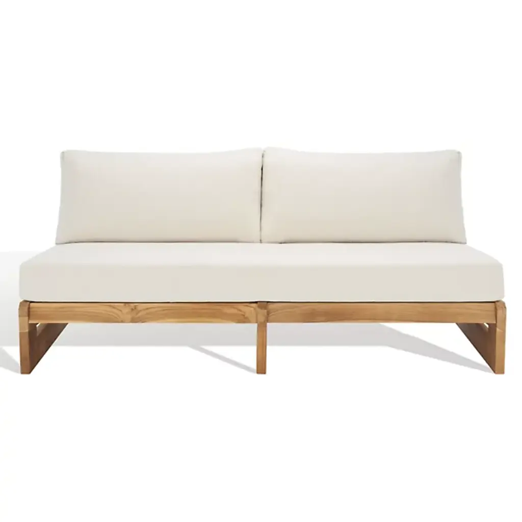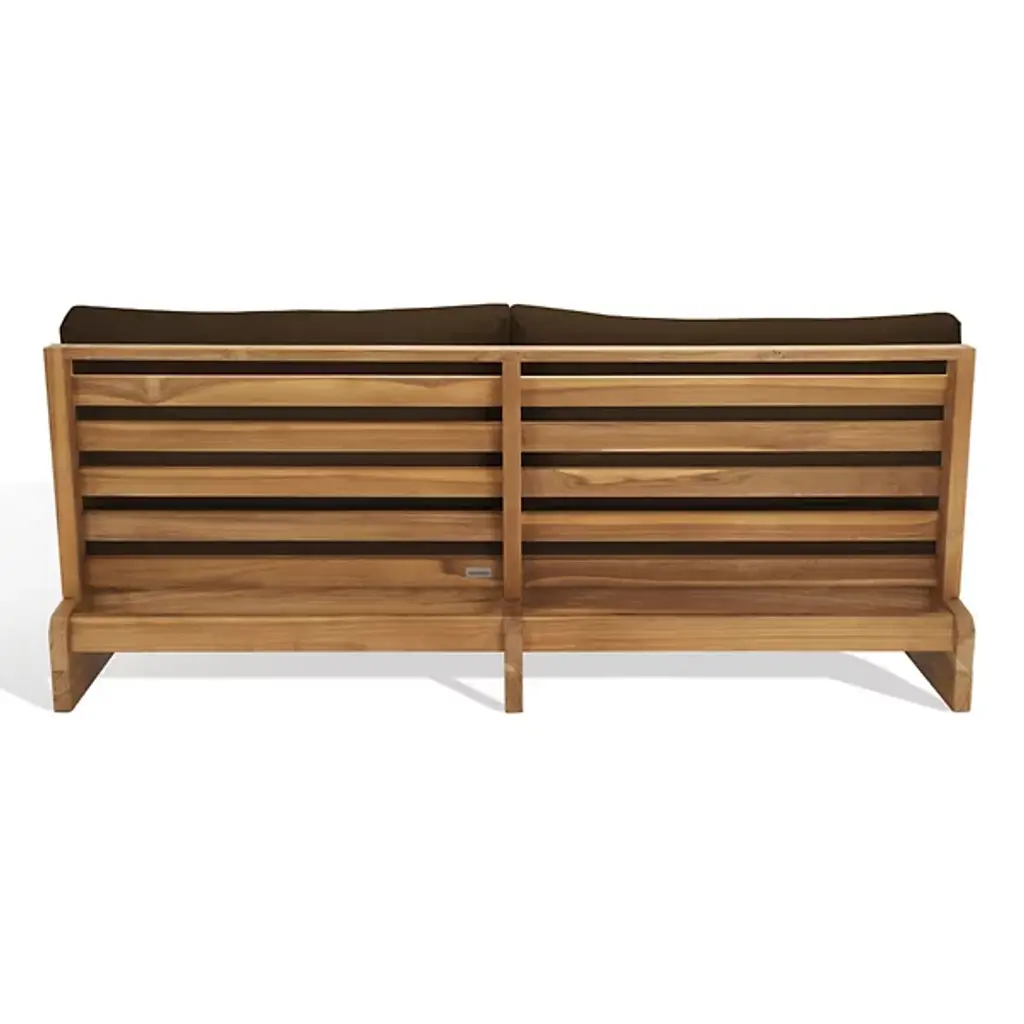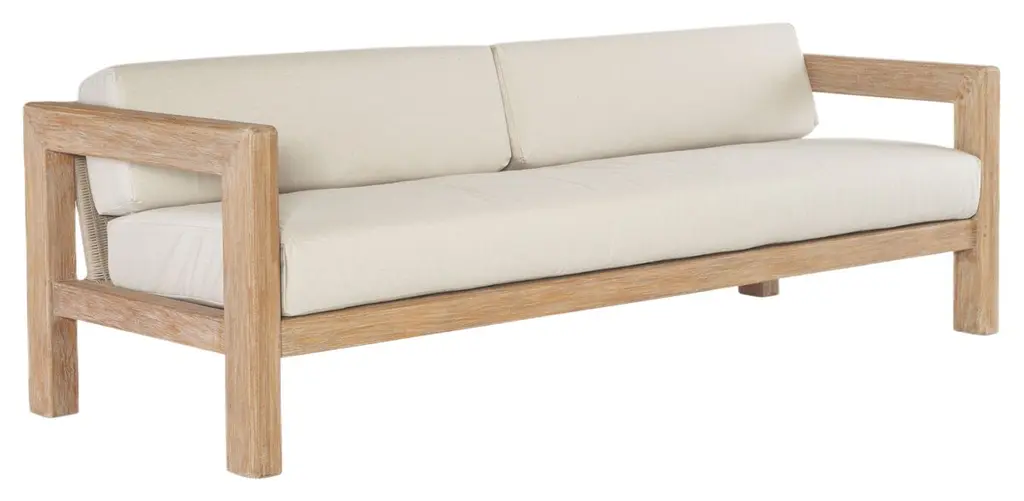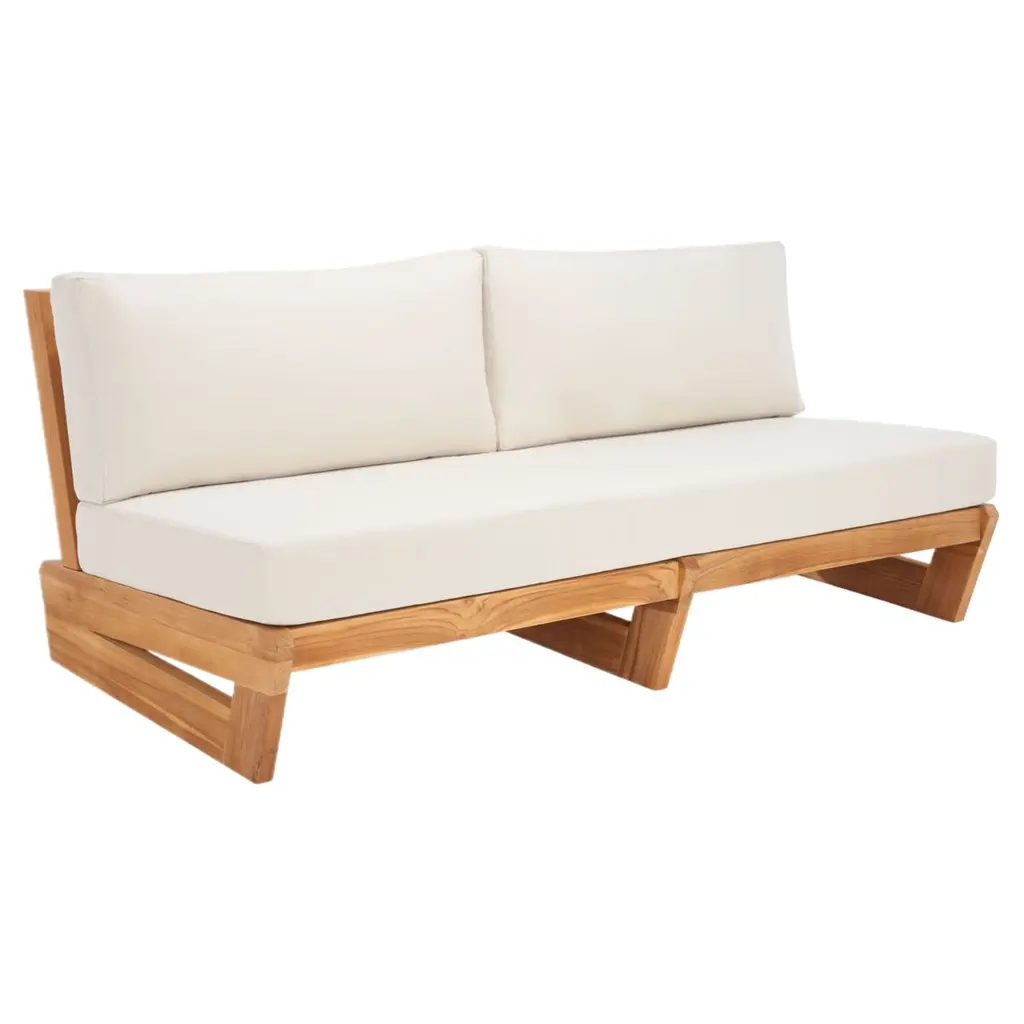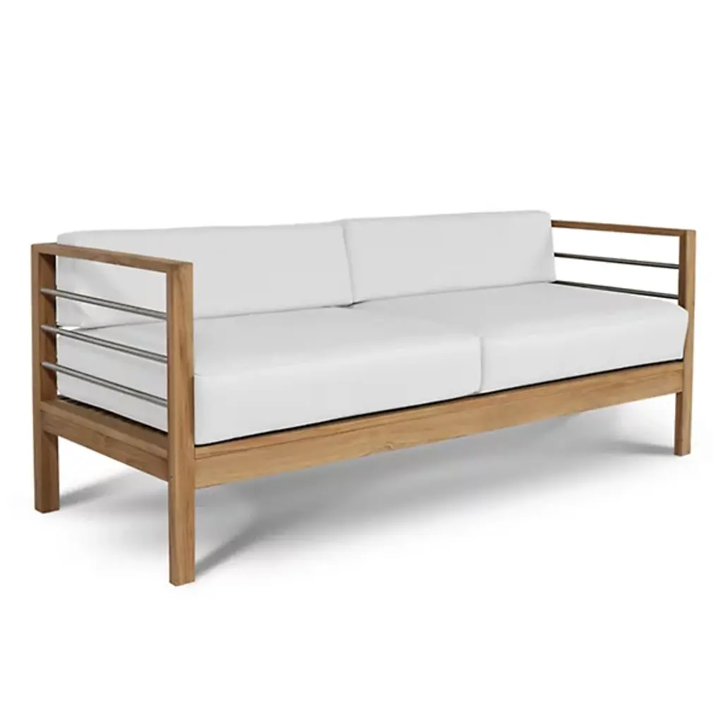 The Donahoe Outdoor Patio Sofa from Alder & Ore channels resort-style comfort with its generous proportions and luxurious cushioning. Brazilian teak construction ensures lasting outdoor performance, while spun polyester upholstery maintains its fresh appearance through the changing seasons. The minimalist frame design allows the natural beauty of teak to shine through while its laid-back profile encourages hours of outdoor enjoyment. The sofa's substantial cushions provide exceptional support, while the frame's careful engineering ensures years of reliable use.