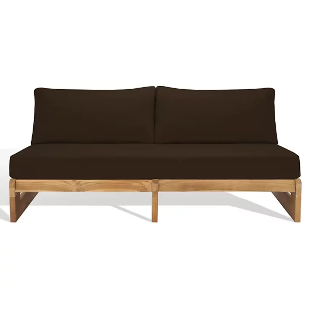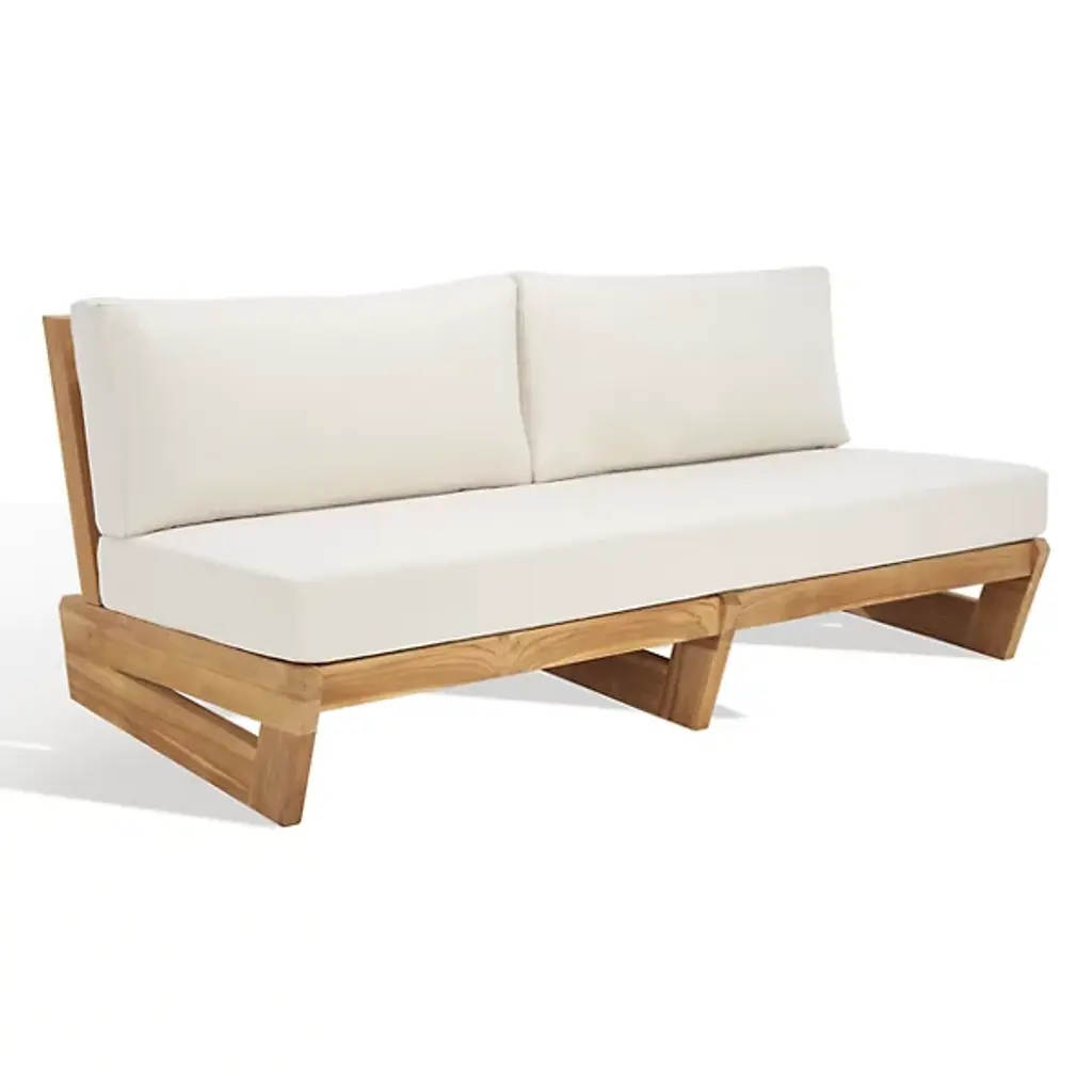 The Donahoe Outdoor Patio Sofa from Alder & Ore channels resort-style comfort with its generous proportions and luxurious cushioning. Brazilian teak construction ensures lasting outdoor performance, while spun polyester upholstery maintains its fresh appearance through the changing seasons. The minimalist frame design allows the natural beauty of teak to shine through while its laid-back profile encourages hours of outdoor enjoyment. The sofa's substantial cushions provide exceptional support, while the frame's careful engineering ensures years of reliable use.