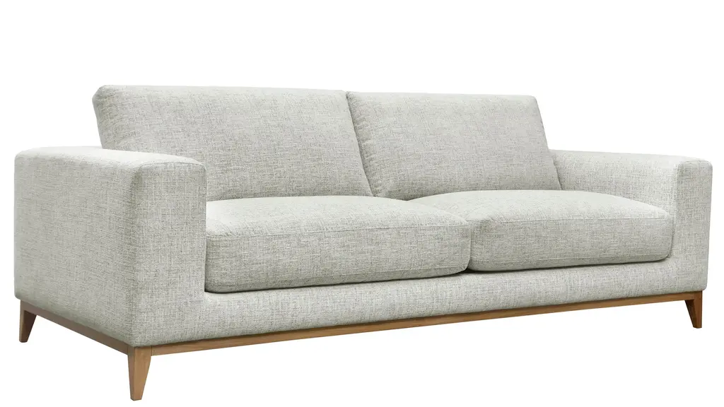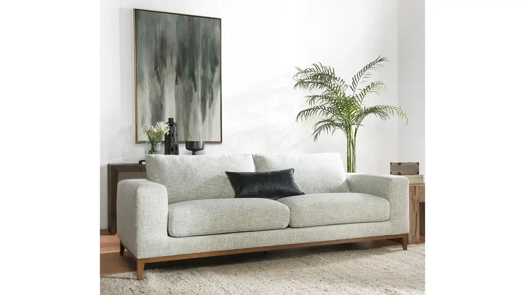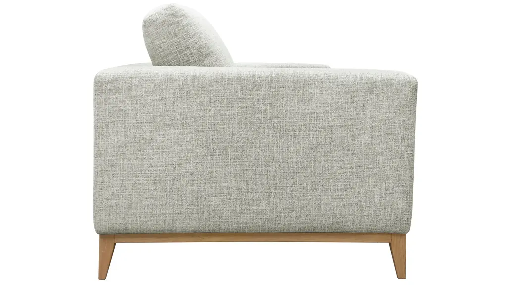 Linen-like textured upholstery and a solid oak frame lend a classic feel to this handsome Donovan Sofa, making it an ideal complement to most styles. The neutral upholstery contrasts with the warm shade of oak wood while tapered legs add visual interest.